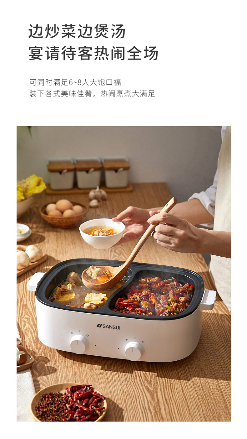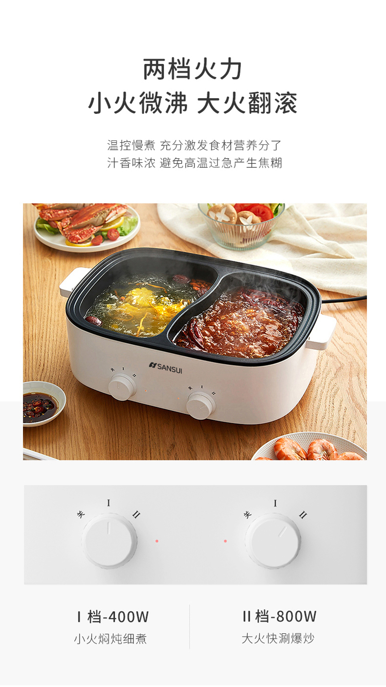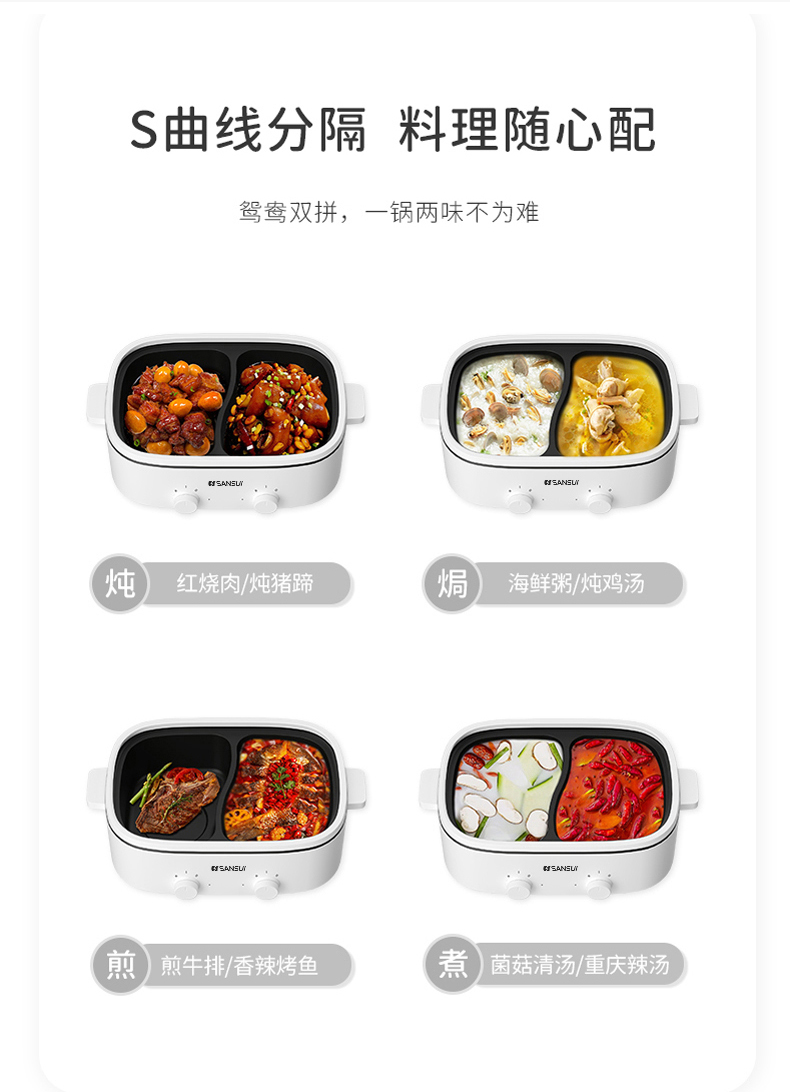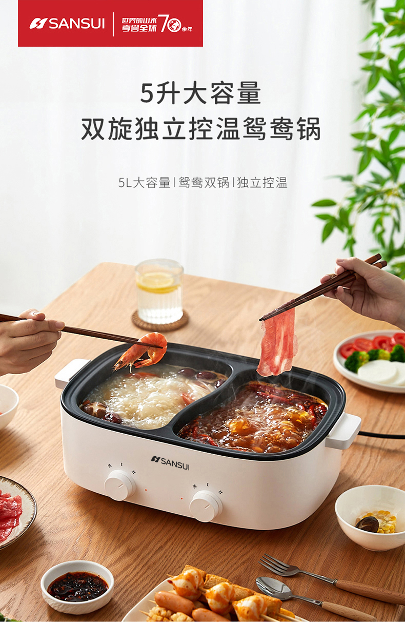山水(SANSUI) /多功能鸳鸯电火锅 (双旋钮控温)/ SHG-3055