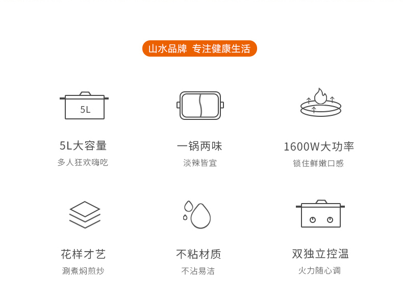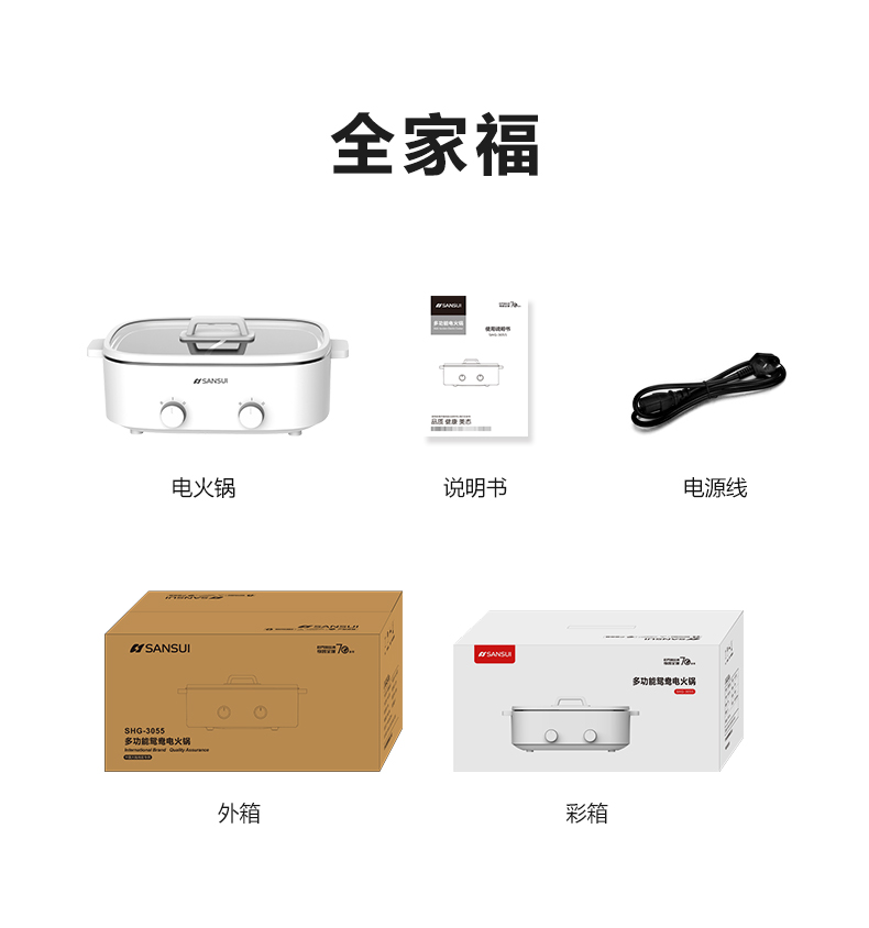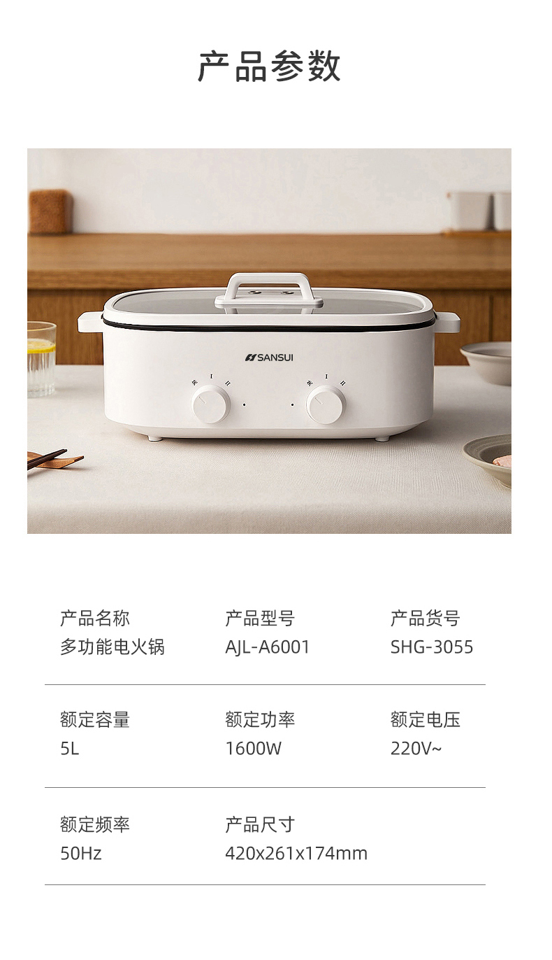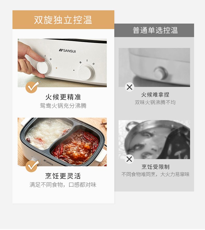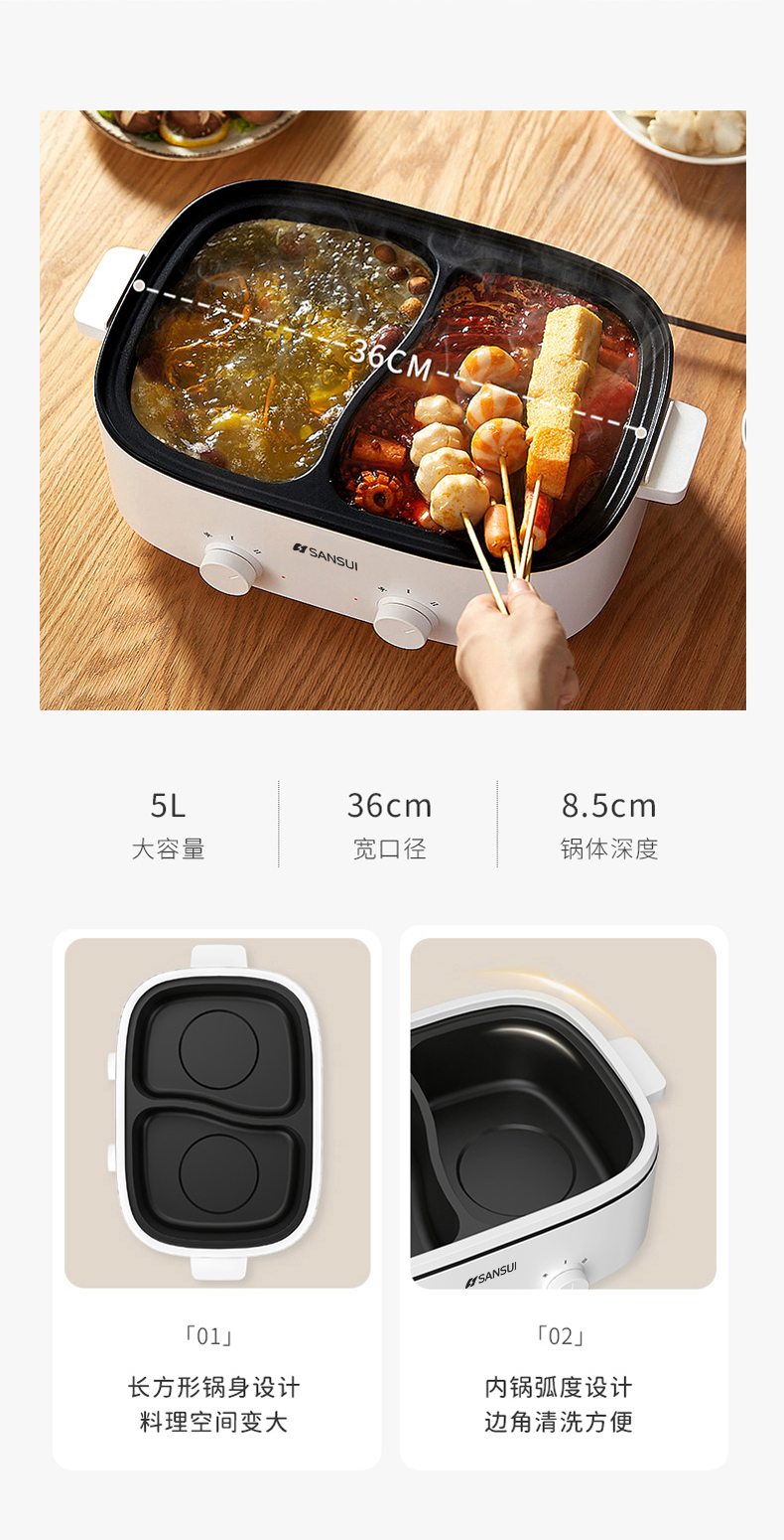 山水(SANSUI) /多功能鸳鸯电火锅 (双旋钮控温)/ SHG-3055