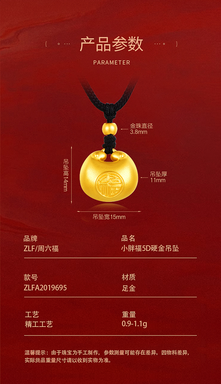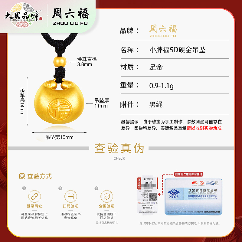 周六福小胖福5D硬金吊坠/ZLFA041966