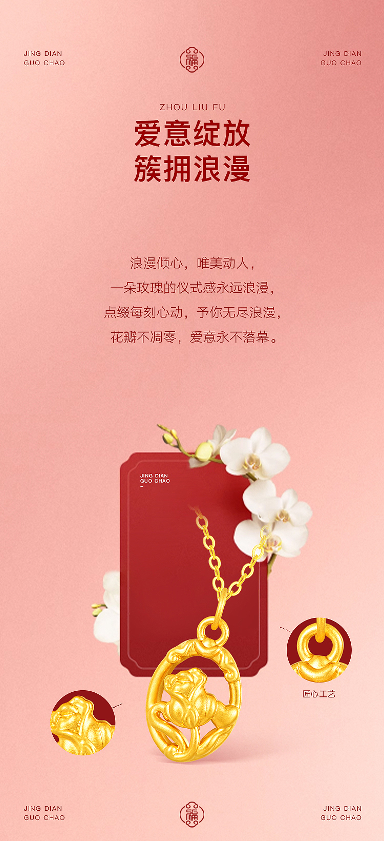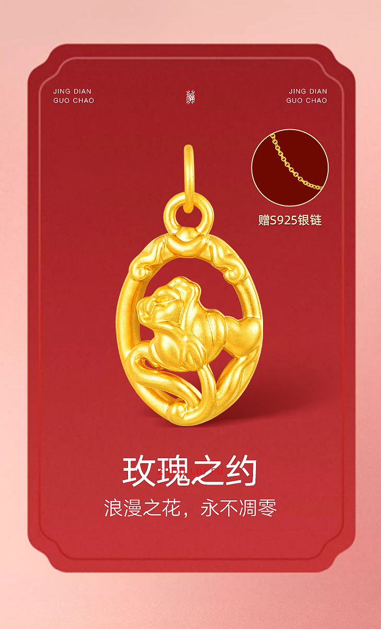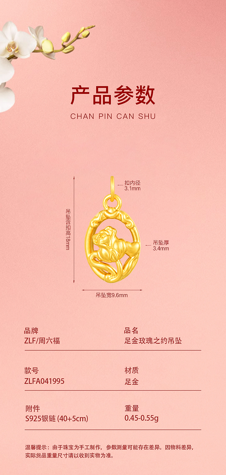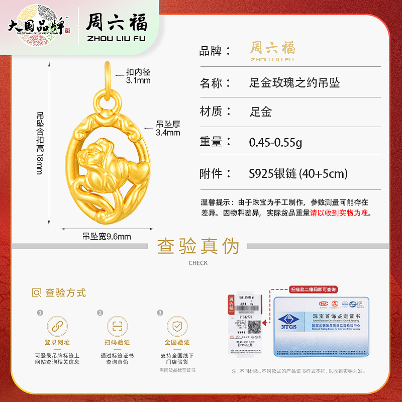 周六福玫瑰之约5D硬金吊坠/ZLFA041995