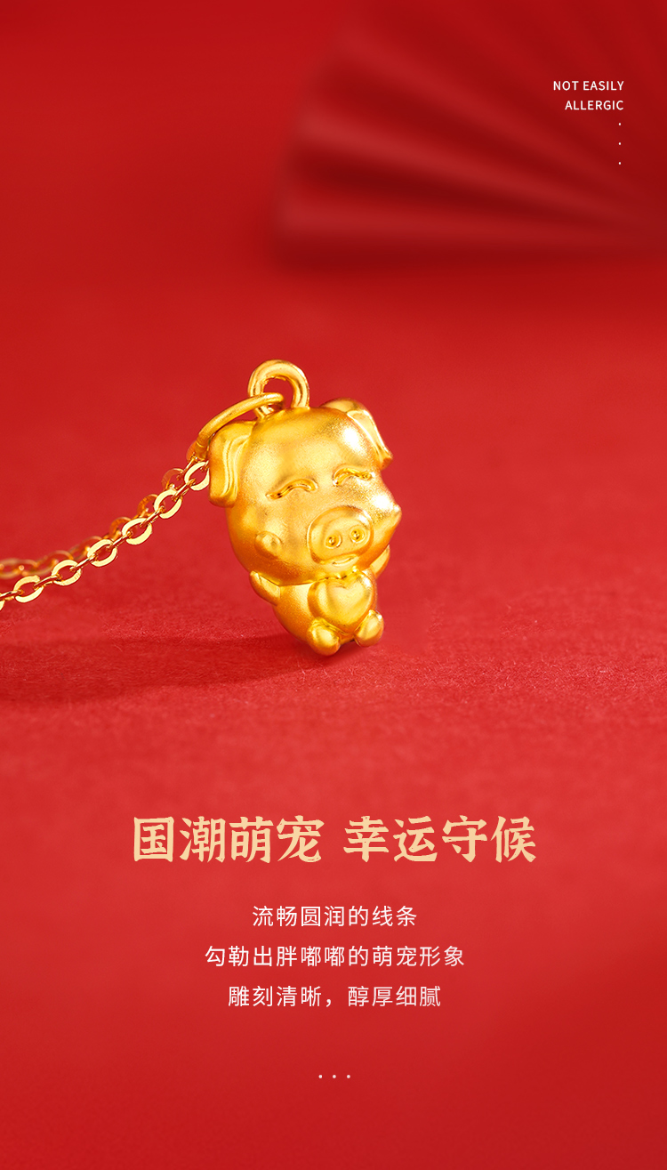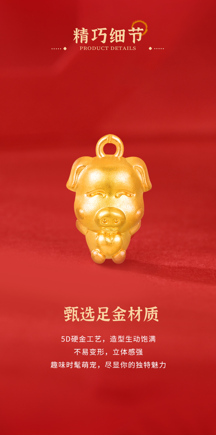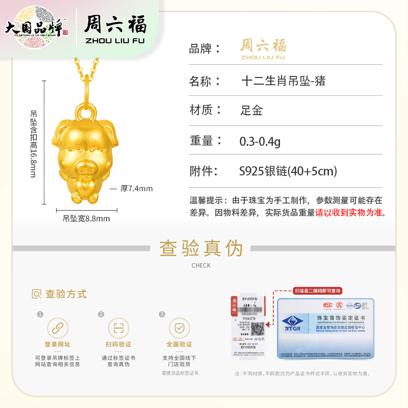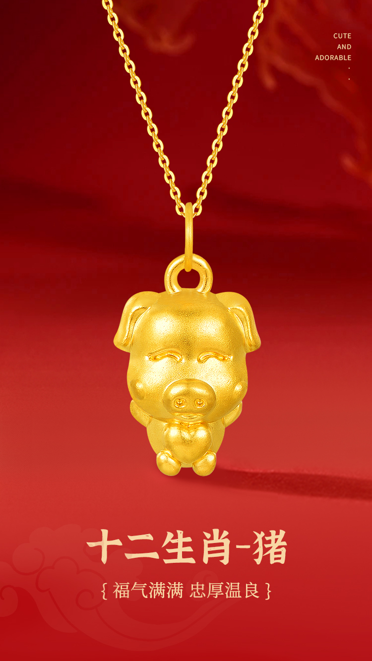周六福足金十二生肖吊坠-猪/ZLFA042771