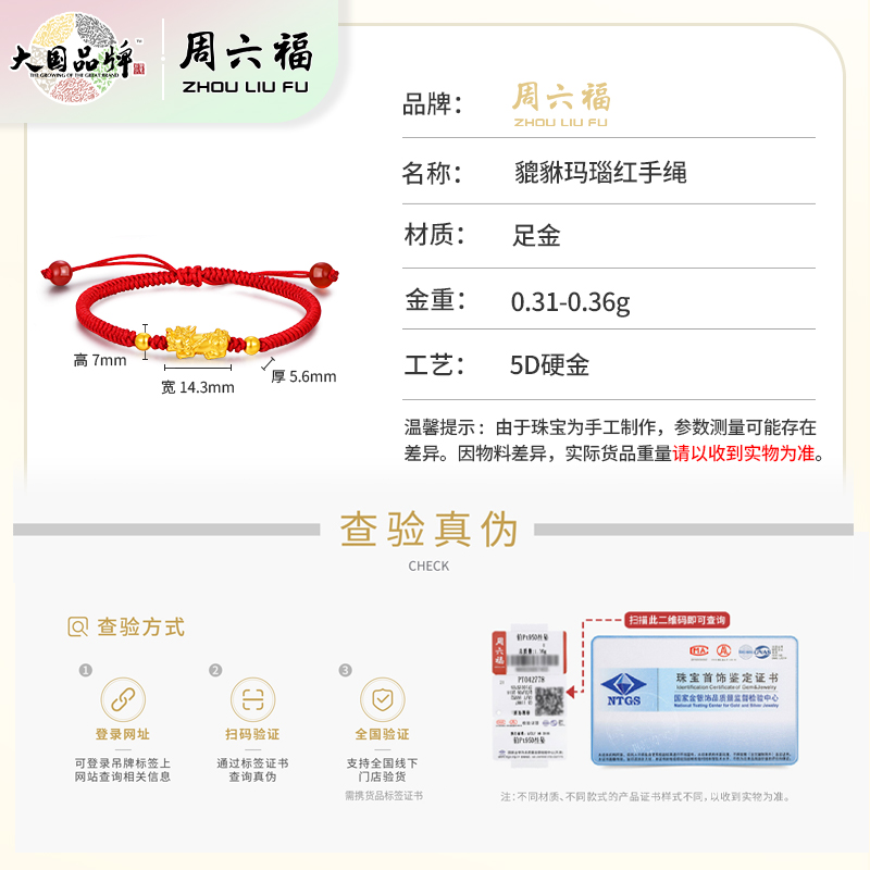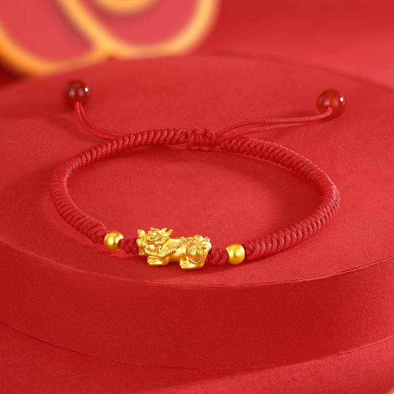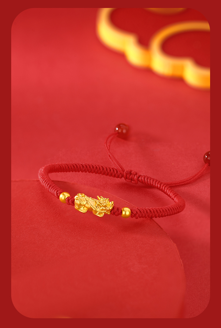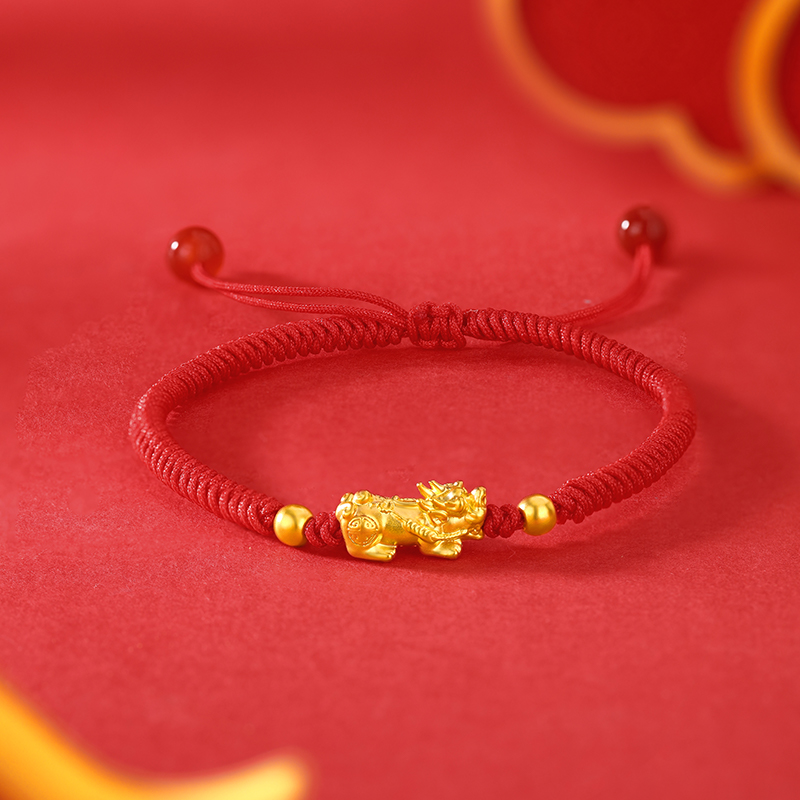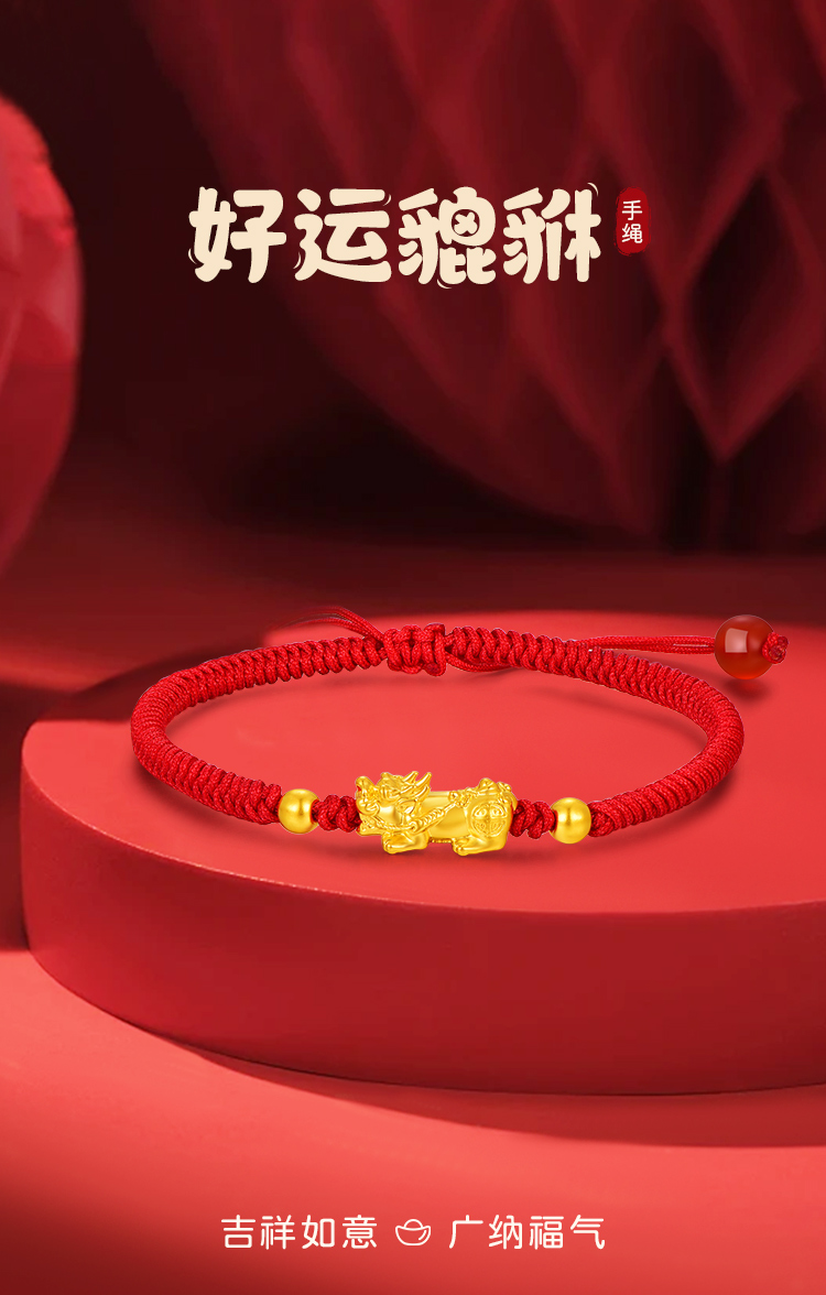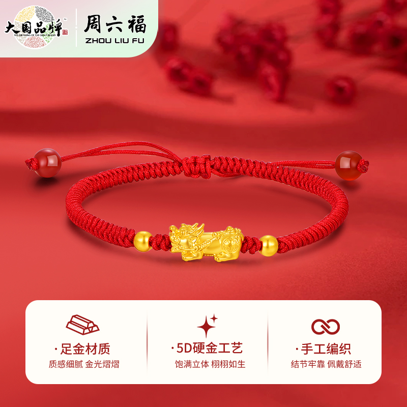 周六福足金招财貔貅玛瑙红手绳