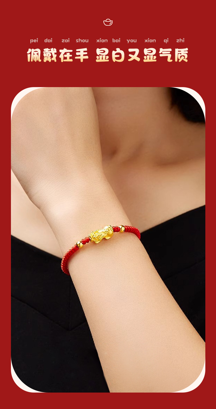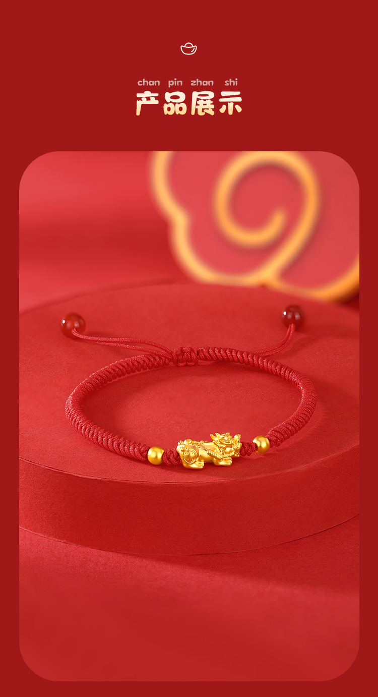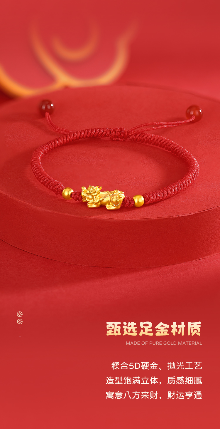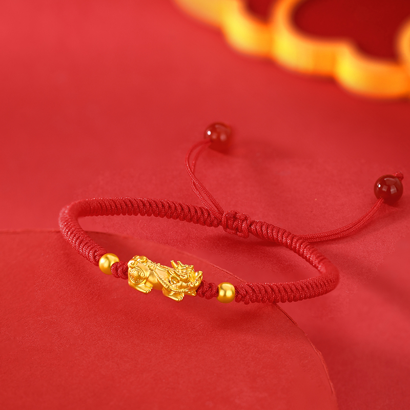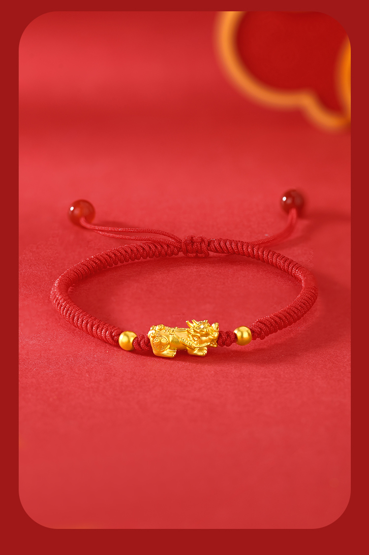 周六福足金招财貔貅玛瑙红手绳