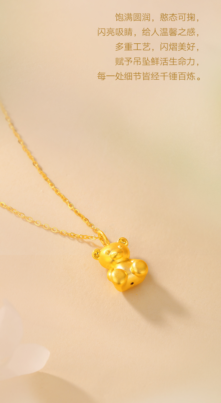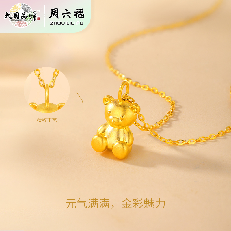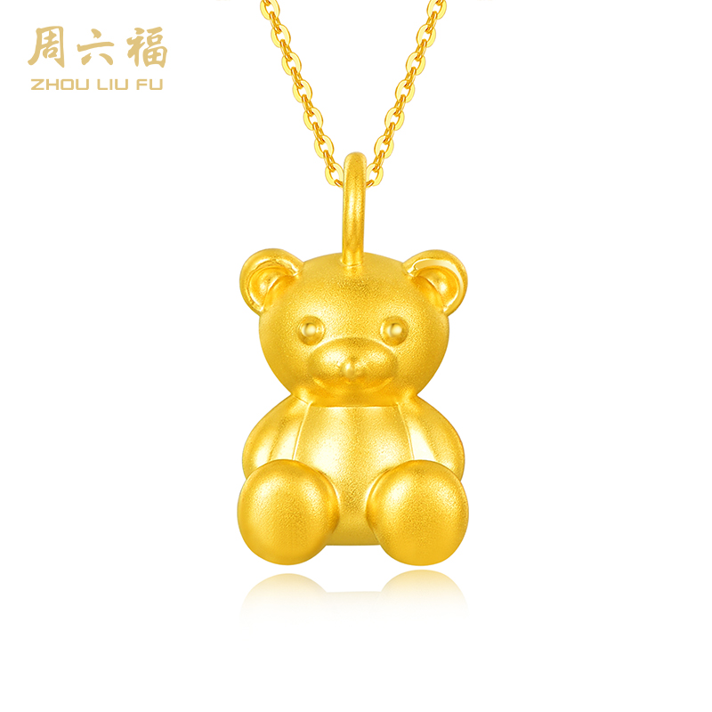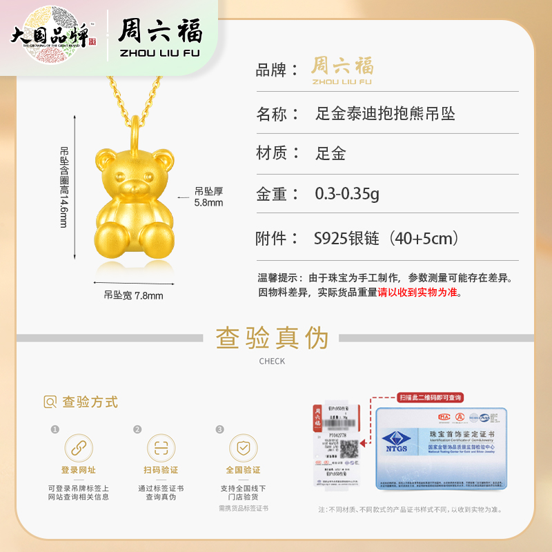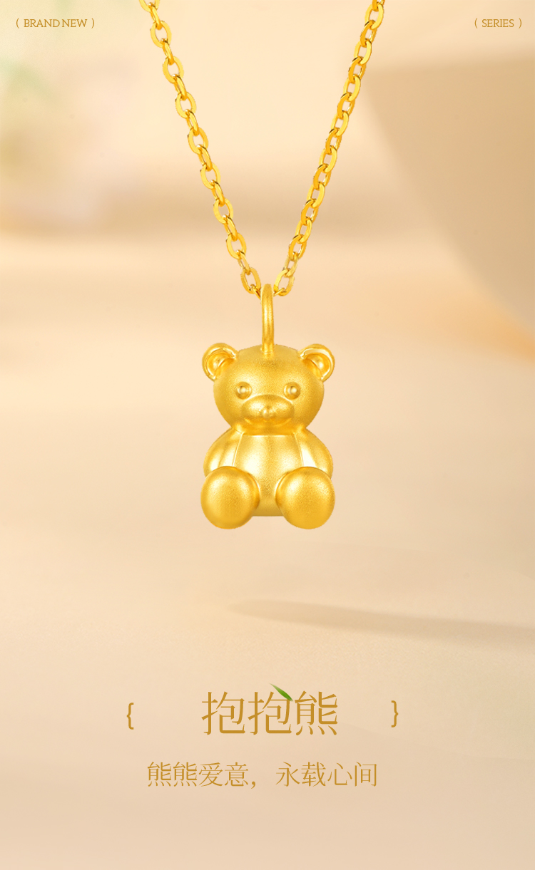 周六福足金泰迪抱抱熊吊坠