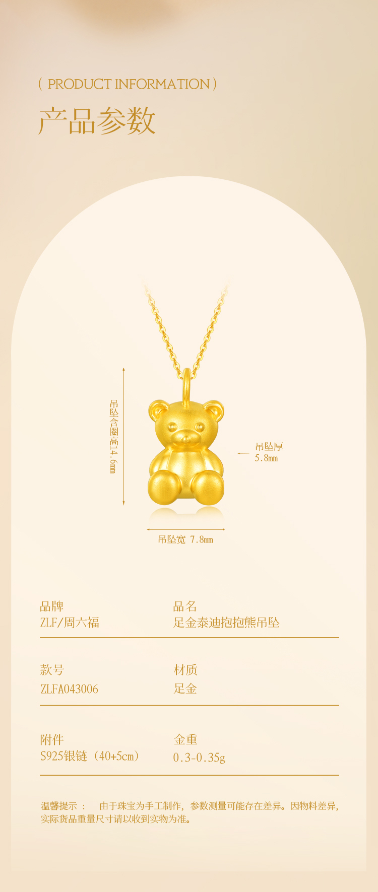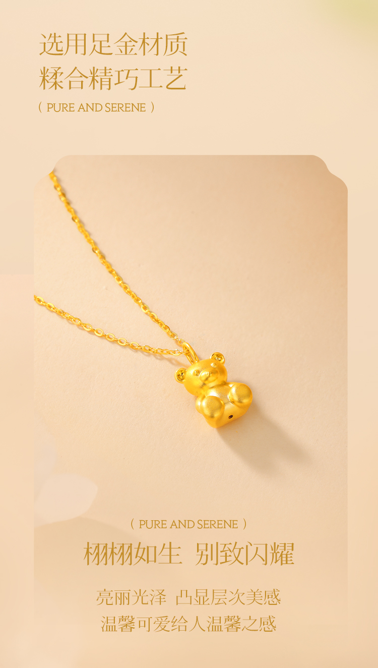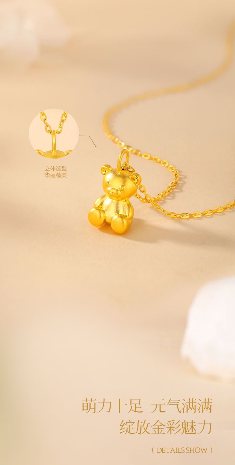 周六福足金泰迪抱抱熊吊坠