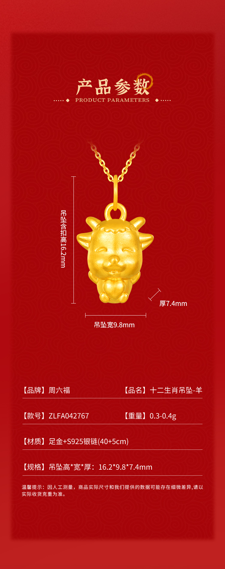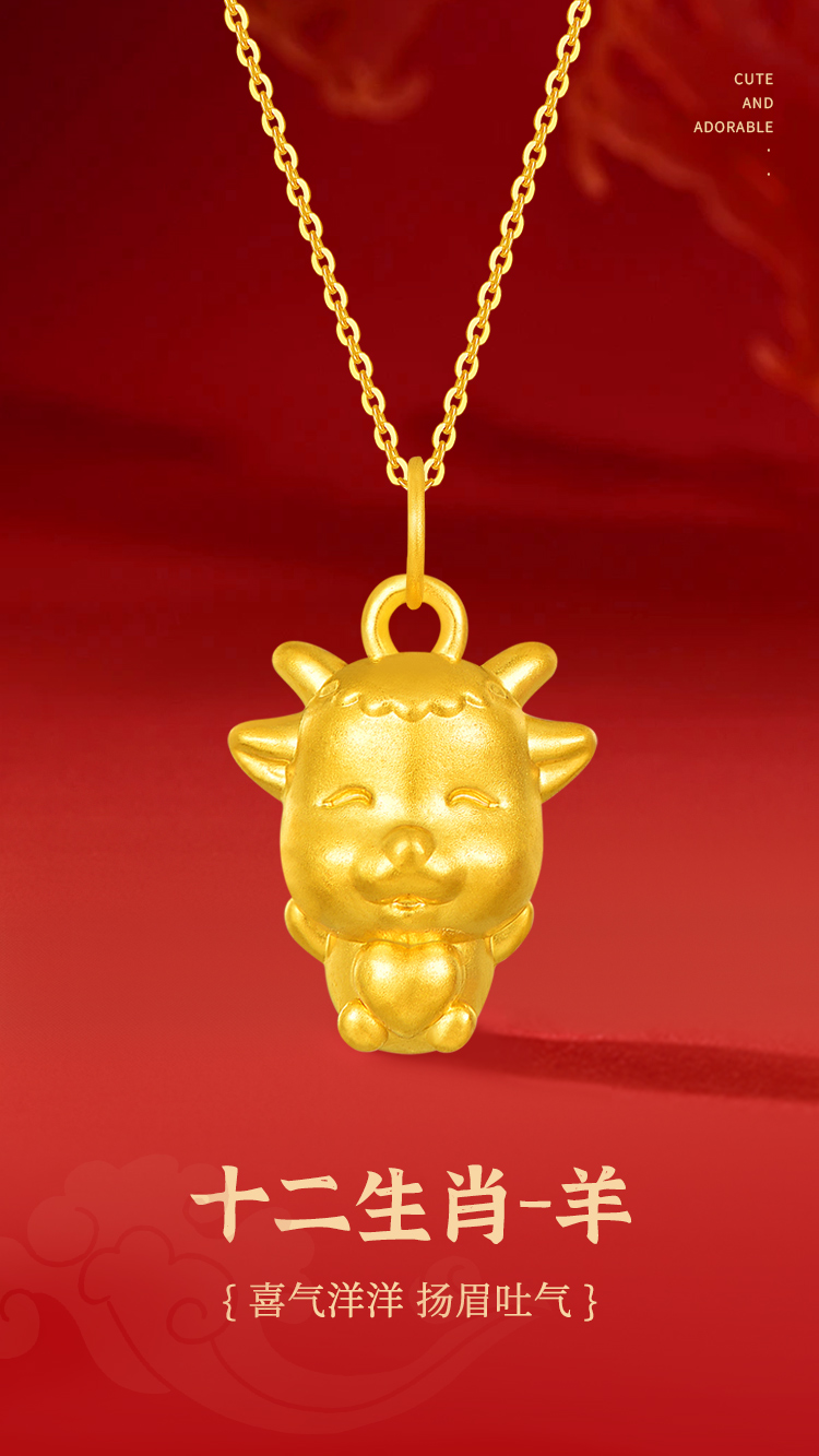 周六福足金十二生肖吊坠-羊