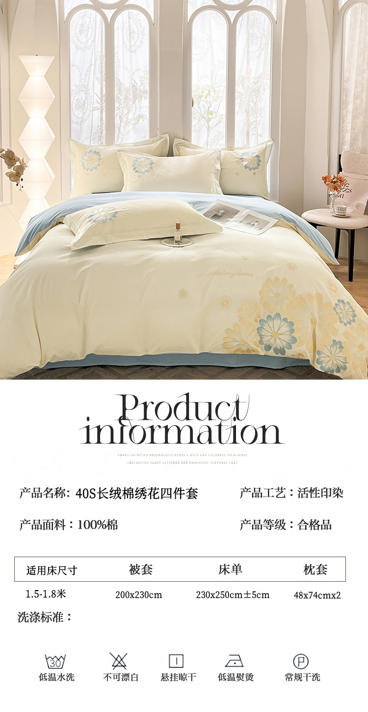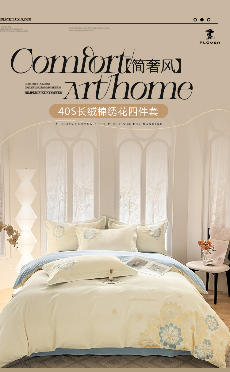 啄木鸟(PLOVER)/40S长绒棉绣花四件套-绽放/ZMN-CRM011(适合1.8M/1.5M床)