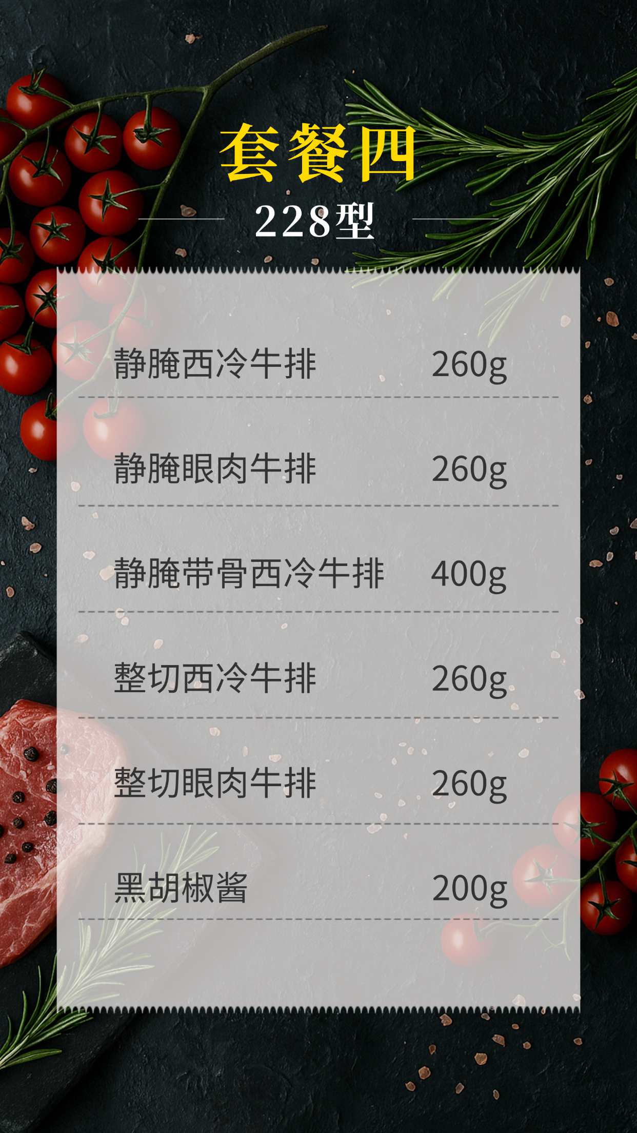 精品牛排礼盒套餐-228型净含量:1640g