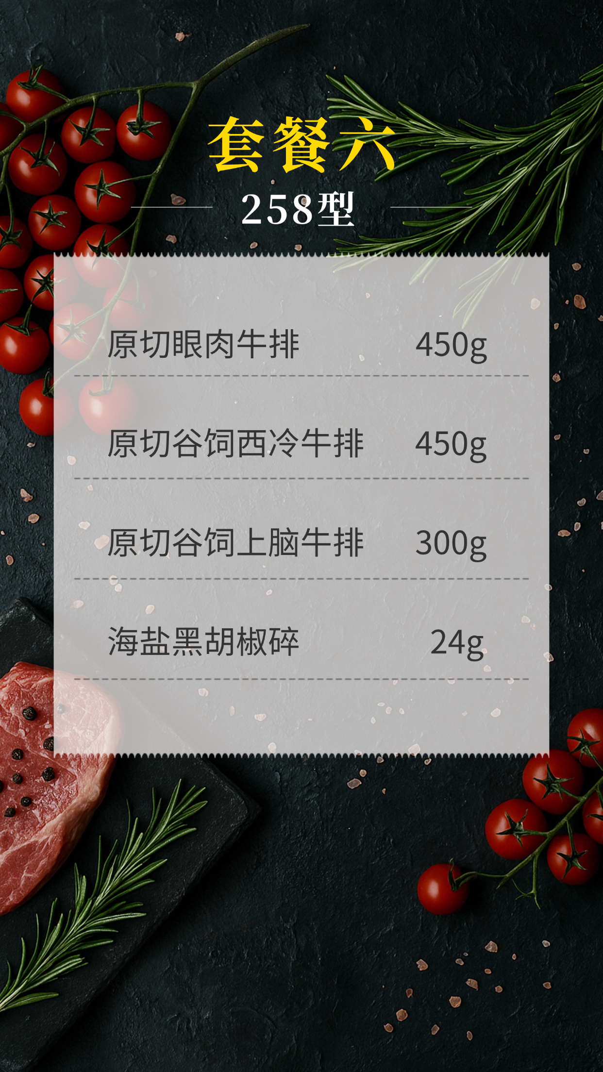 精品原切牛排礼盒套餐-258型净含量:1224g