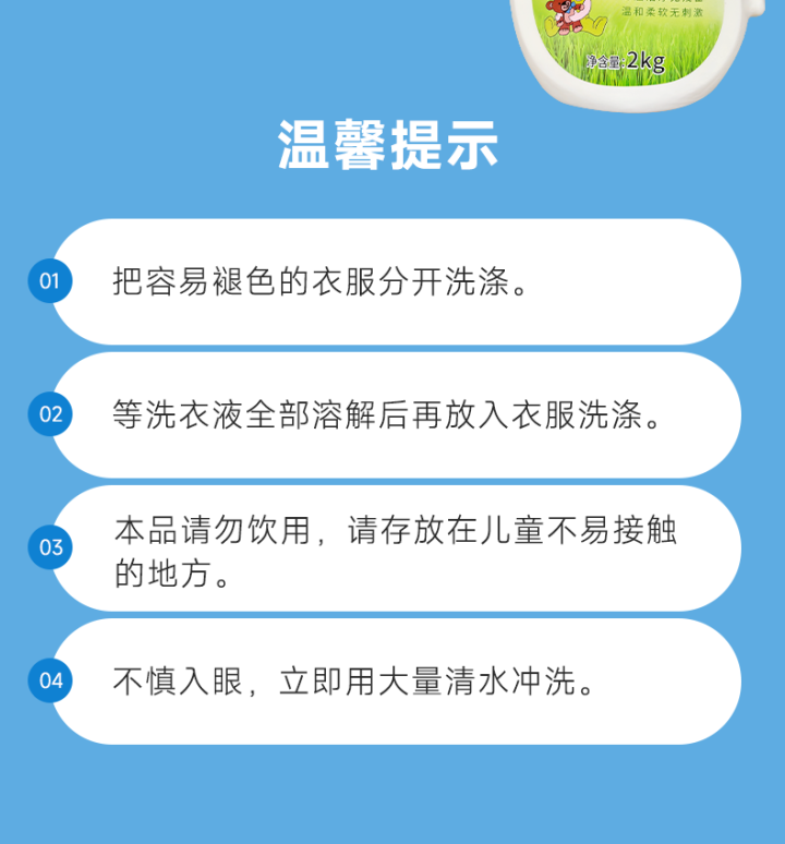 6瓶2公斤母婴专用洗衣液 温和无残留 专为宝宝衣物设计【付款后,不退款,不换货。介意勿拍】