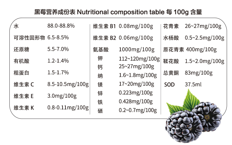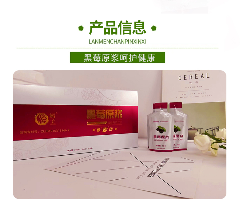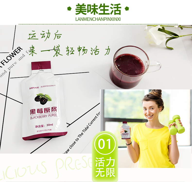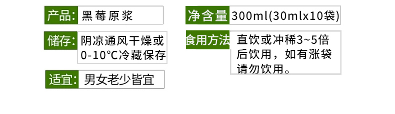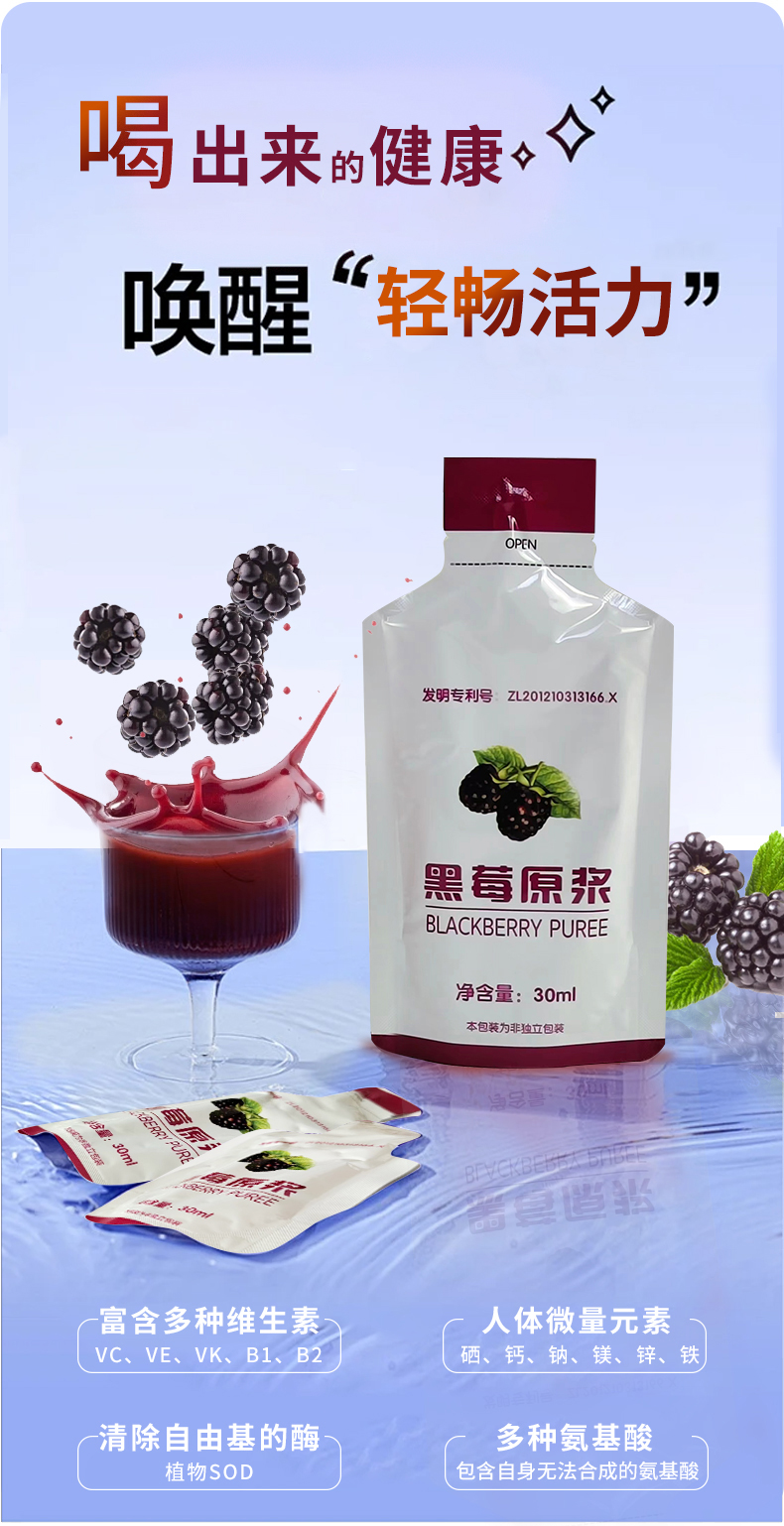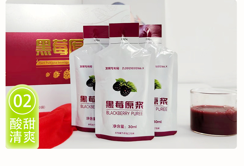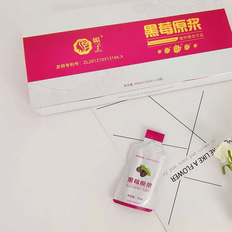 (1盒装)黑莓原浆复合果浆饮品酸甜爽口30ml/袋*10袋/盒