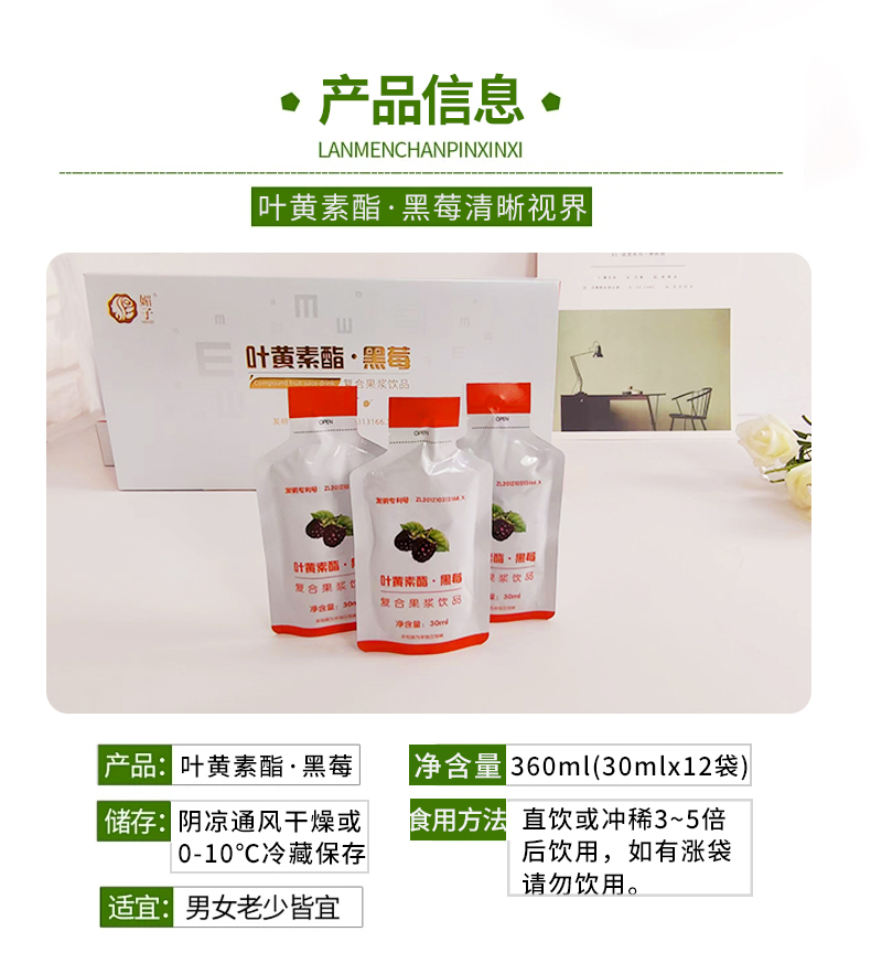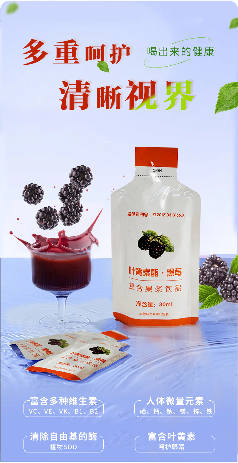 (1盒装)叶黄素酯·黑莓复合果浆饮品营养健康30ml/袋*12袋/盒