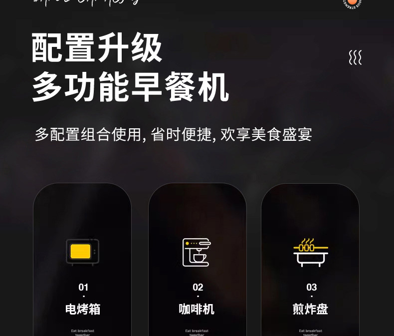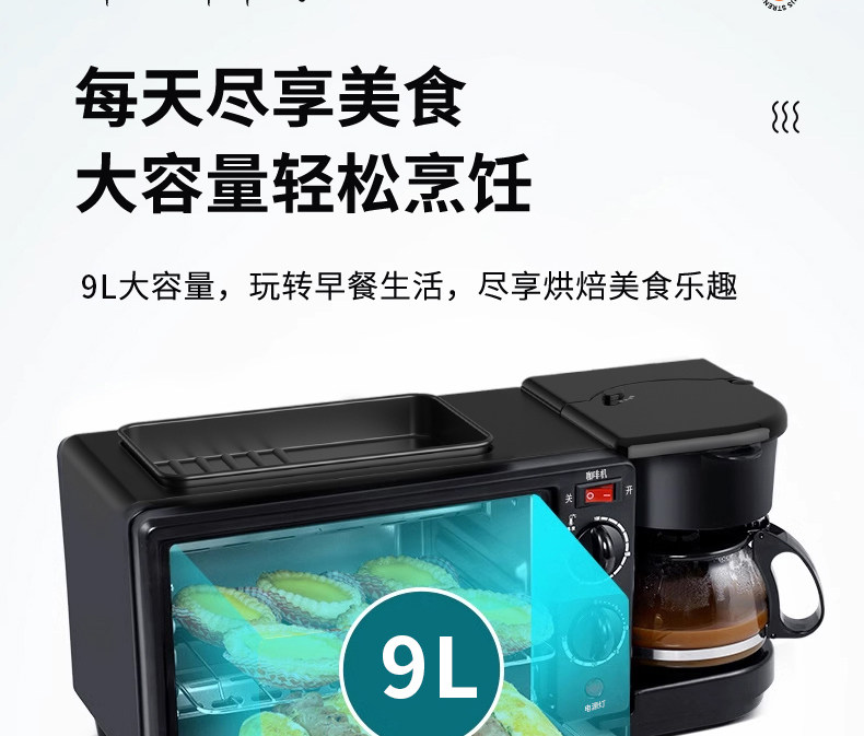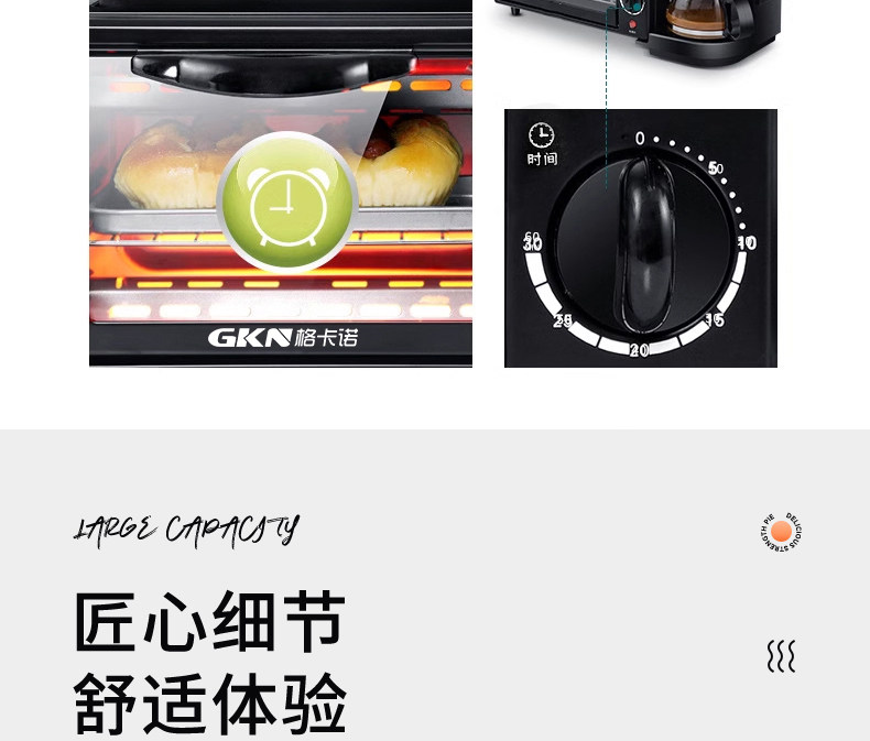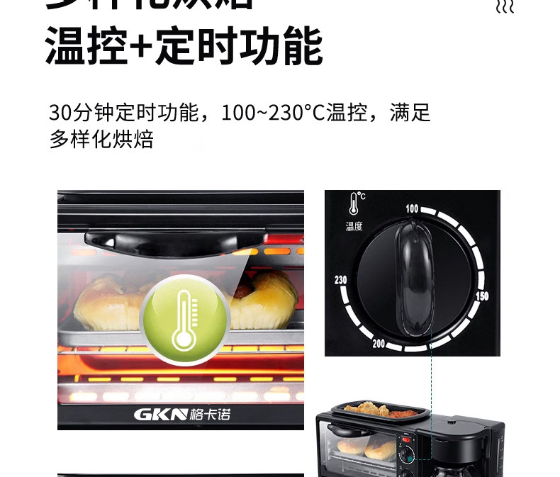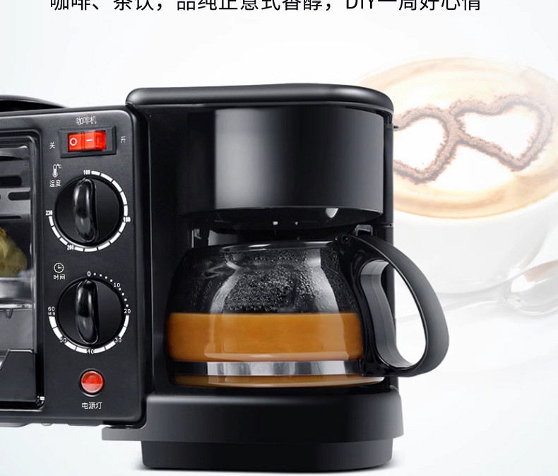 格卡诺新款三合一早餐机多功能煮咖啡热牛奶迷你小型面包机GKN-ZCJ-01