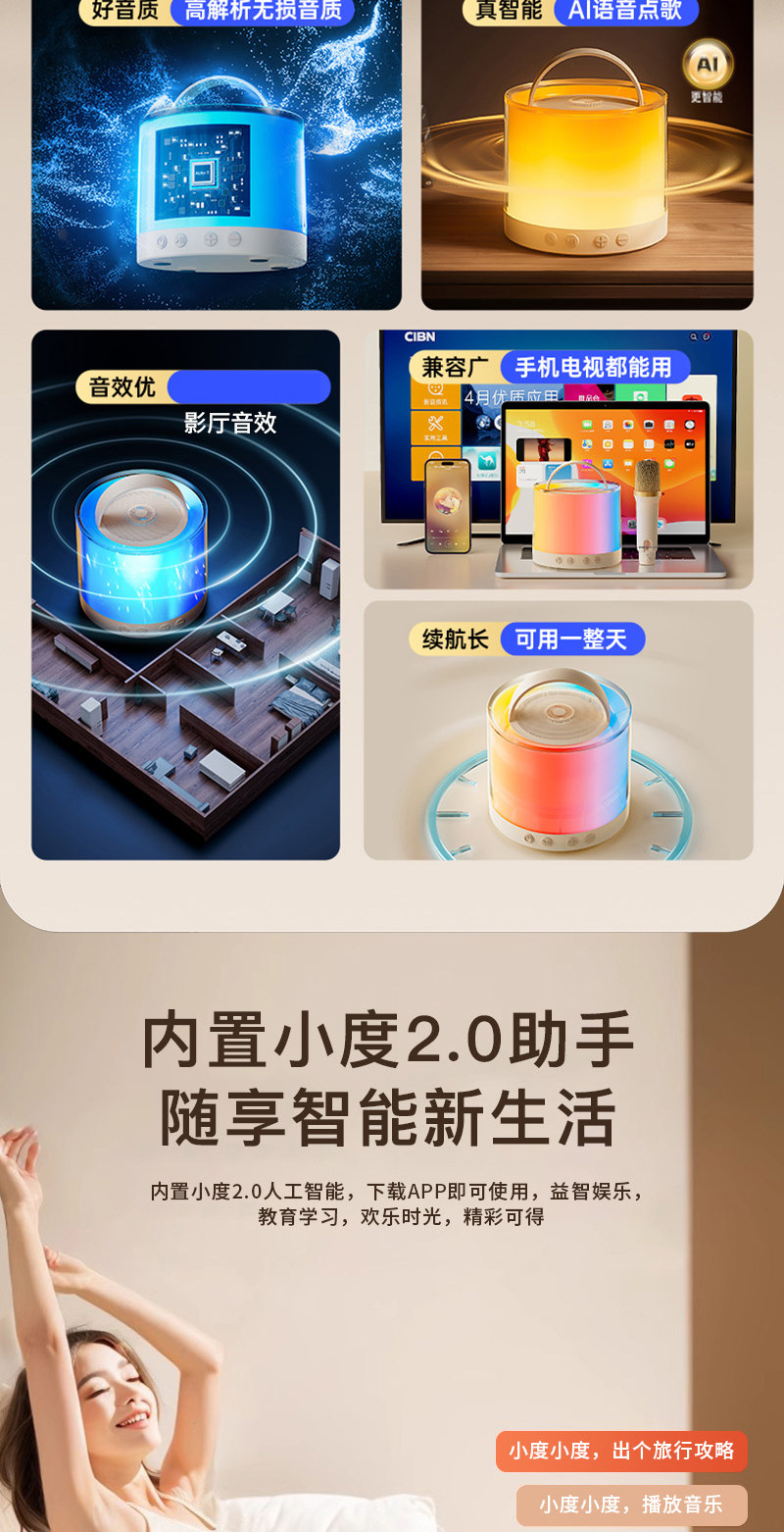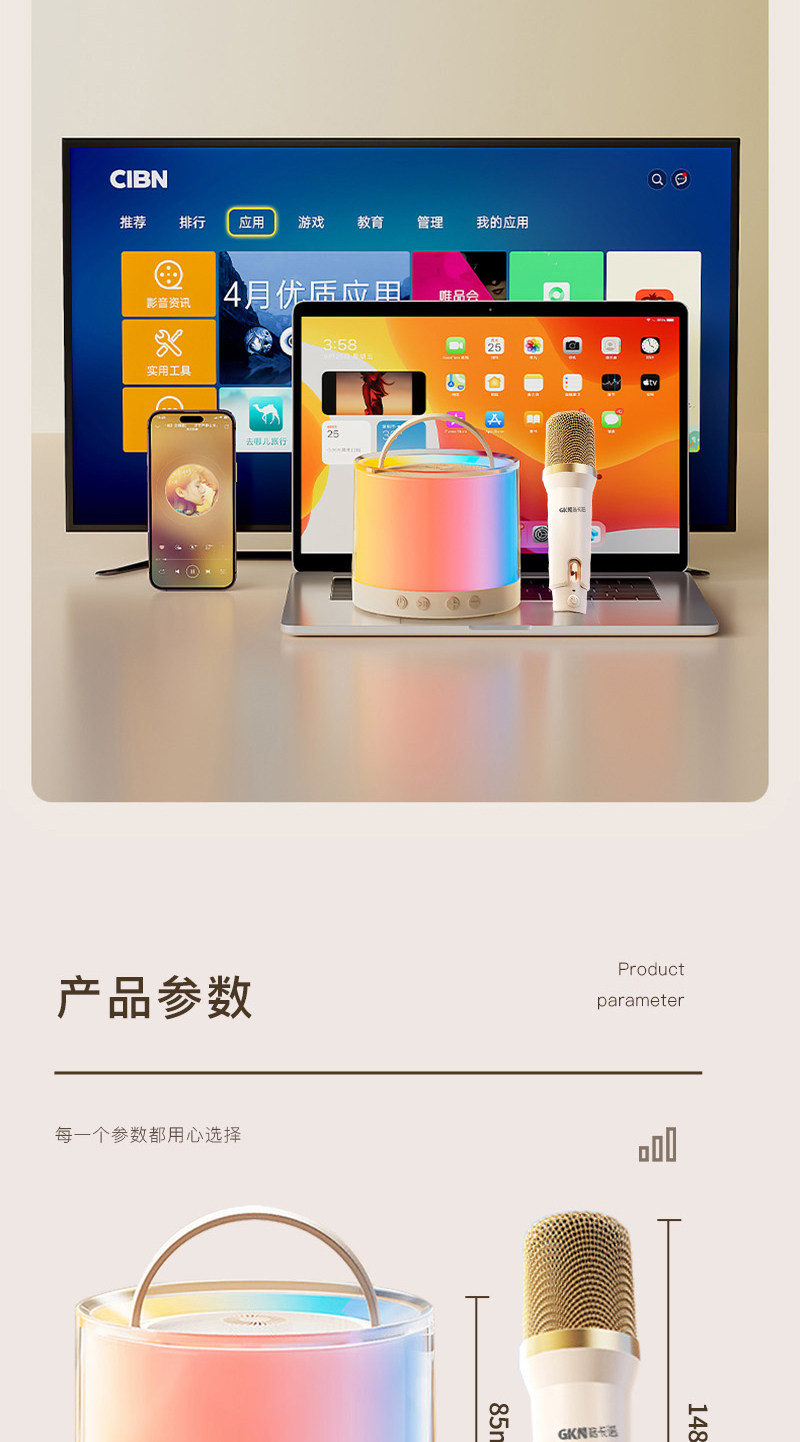 米白色)高音质环绕K歌户外客厅