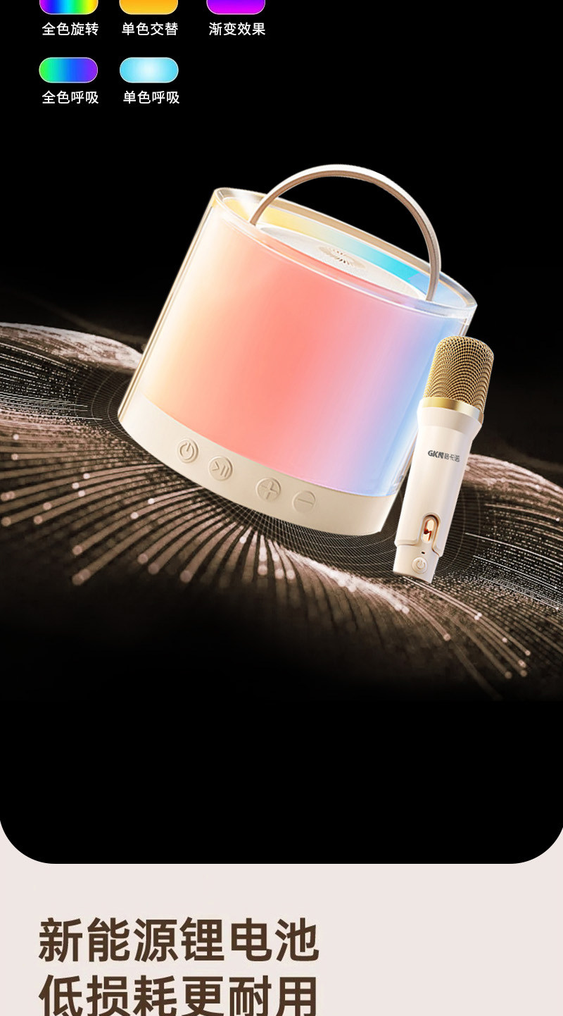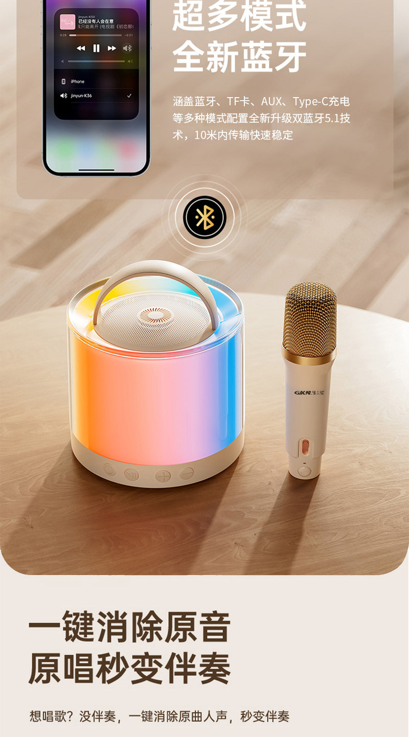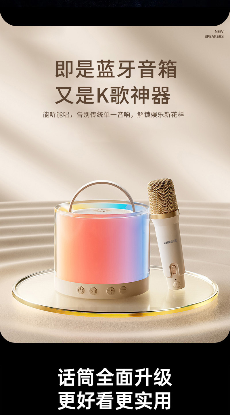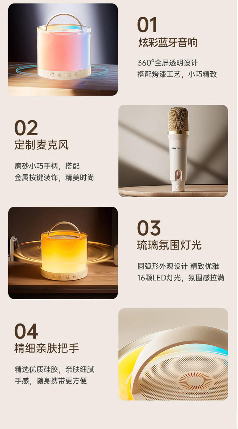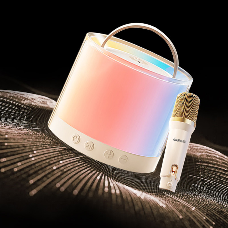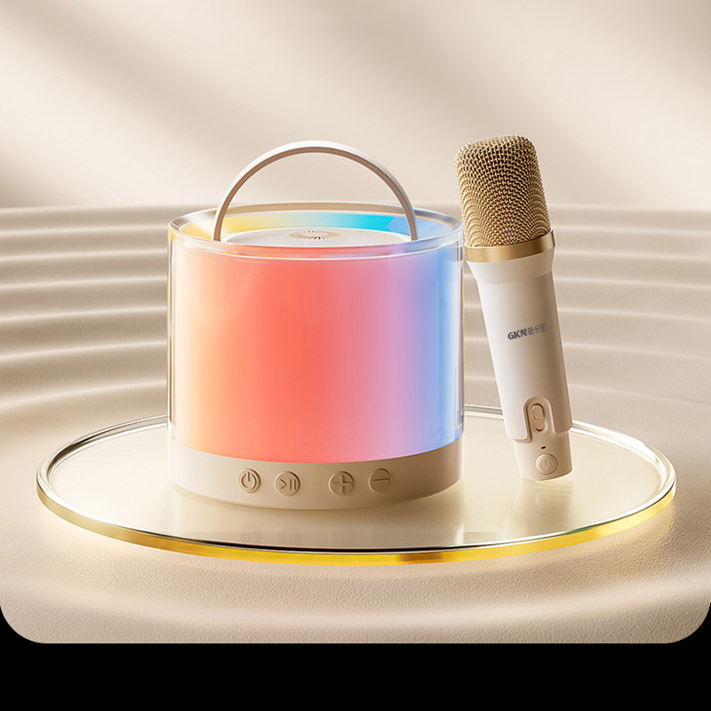 格卡诺炫彩蓝牙音响+话筒(米白色)高音质环绕K歌户外客厅