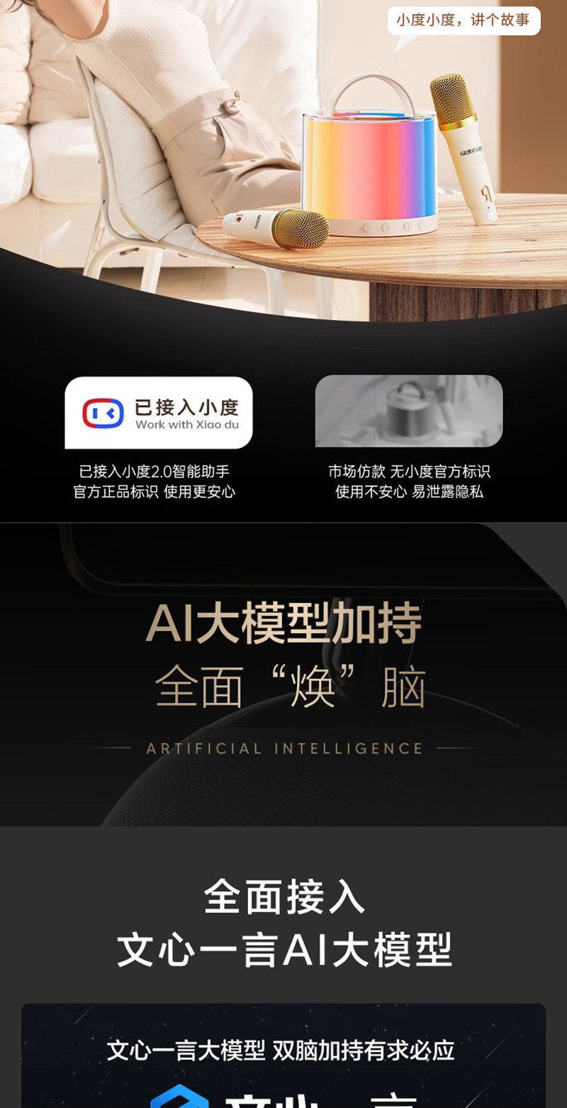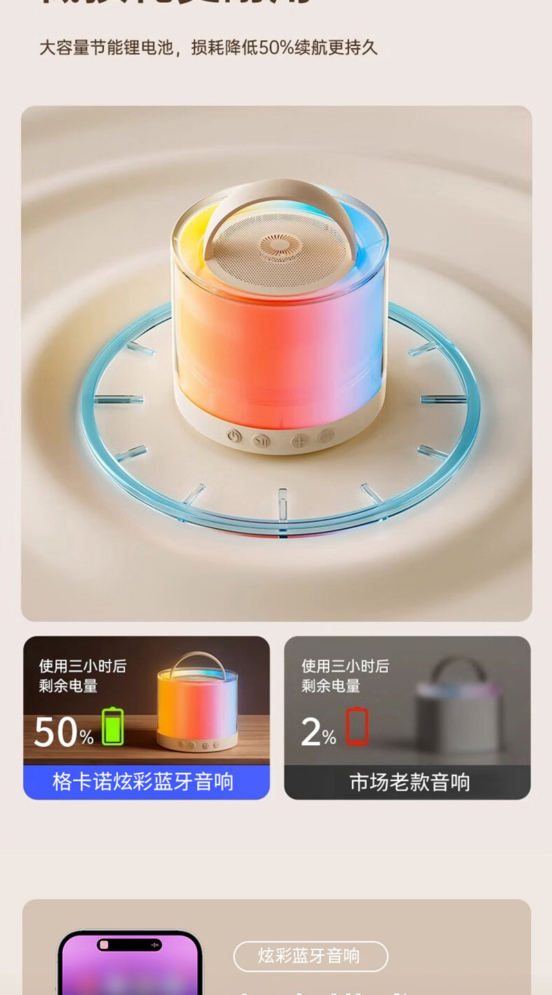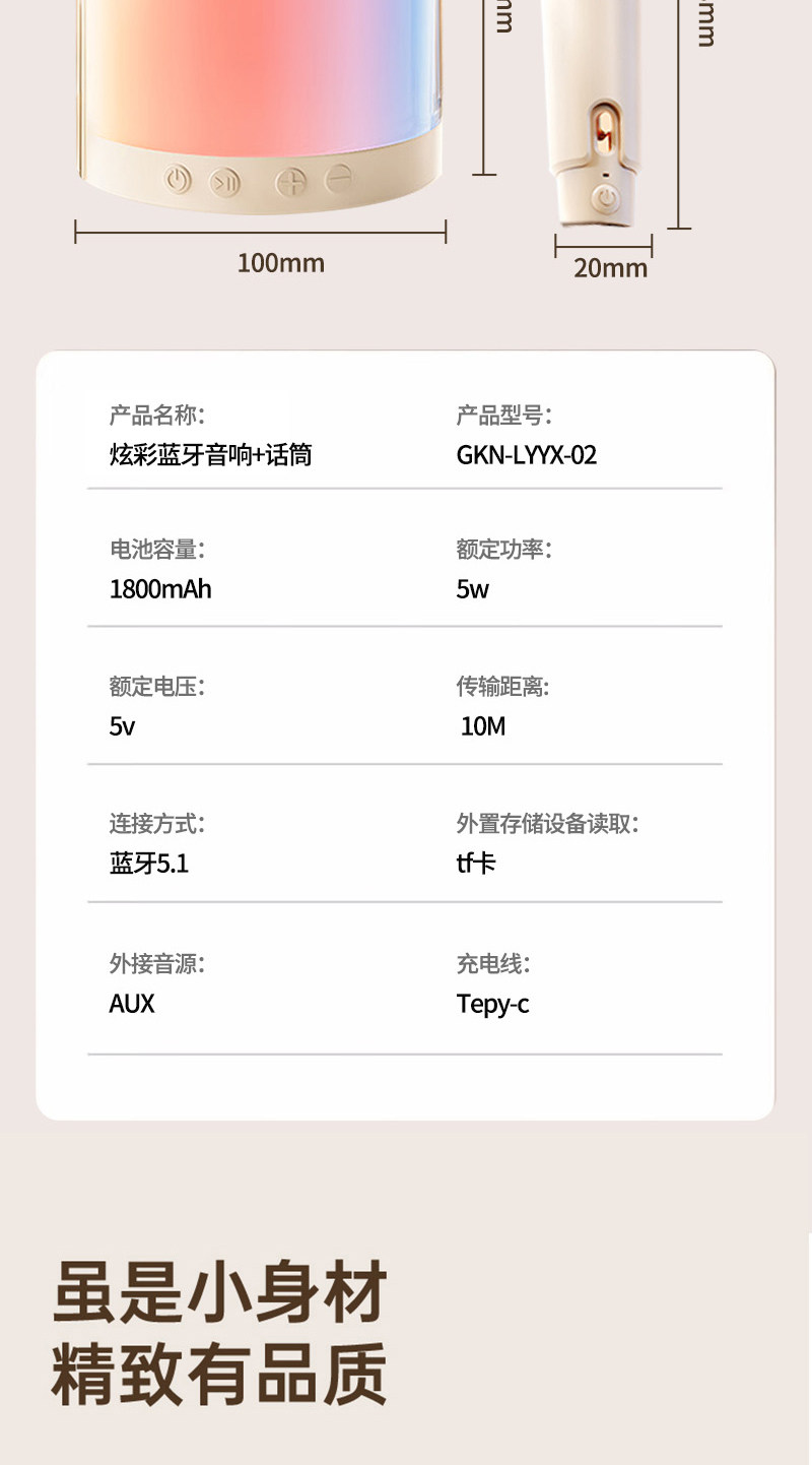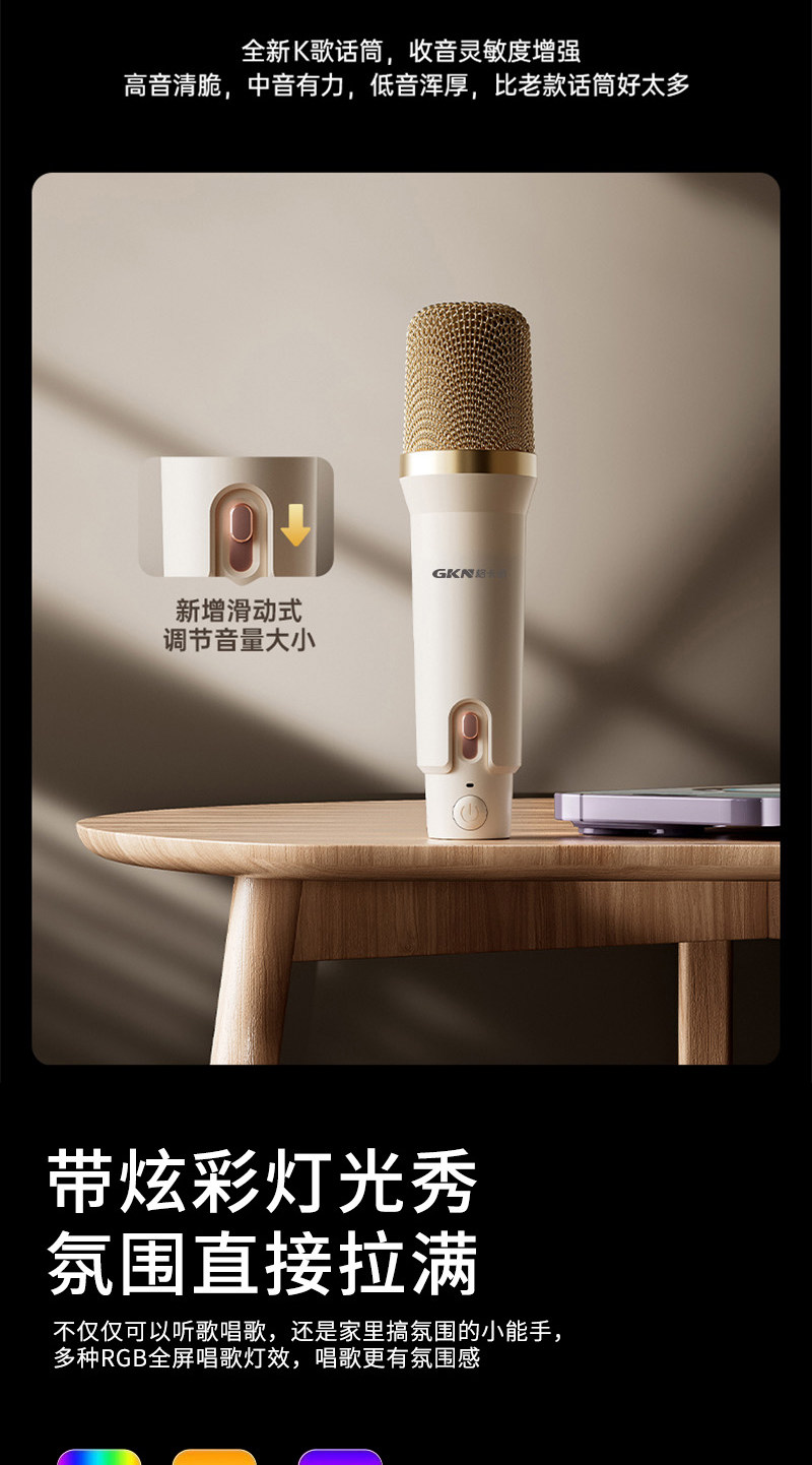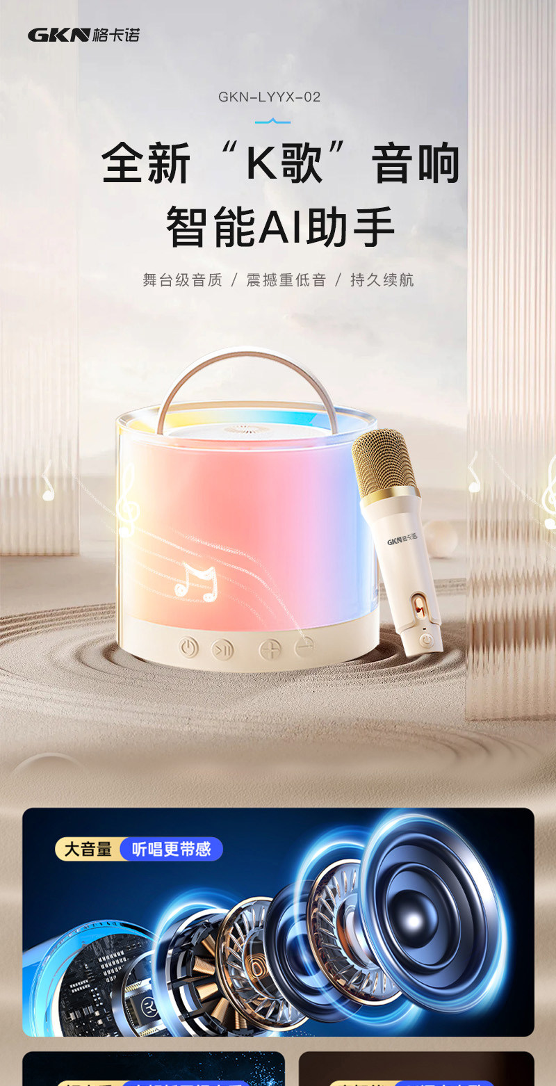 格卡诺炫彩蓝牙音响+话筒(米白色)高音质环绕K歌户外客厅