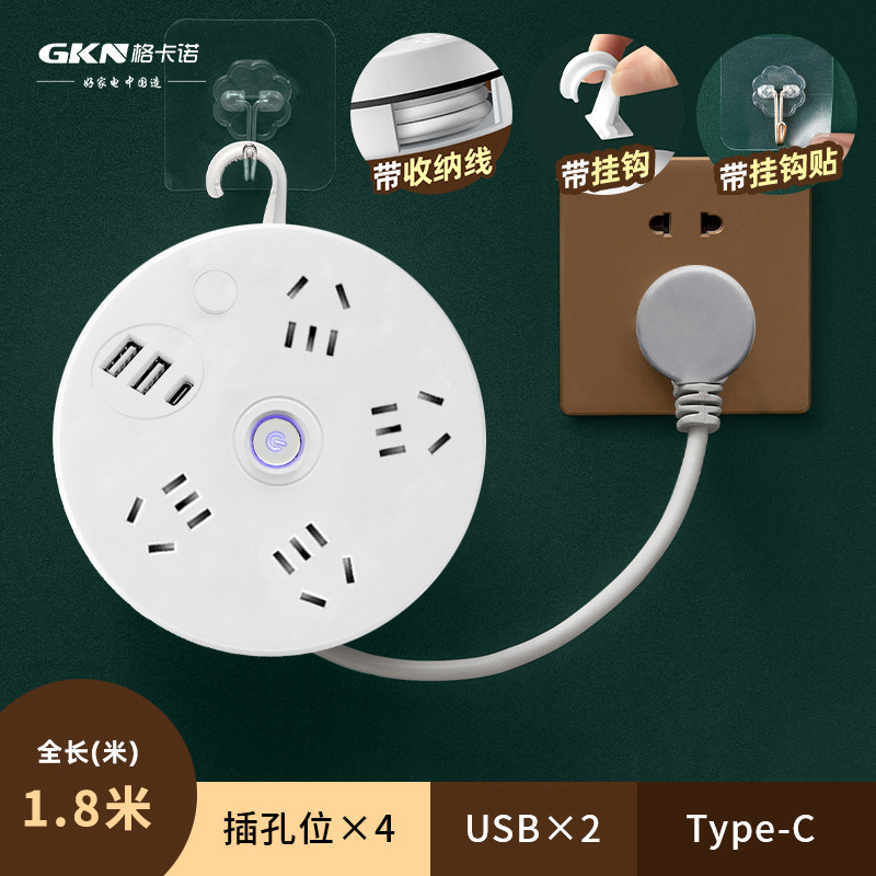 格卡诺 可收纳电插板排插GKN-PC-01(组合插孔×4+USB插孔×2+Type-C×1)