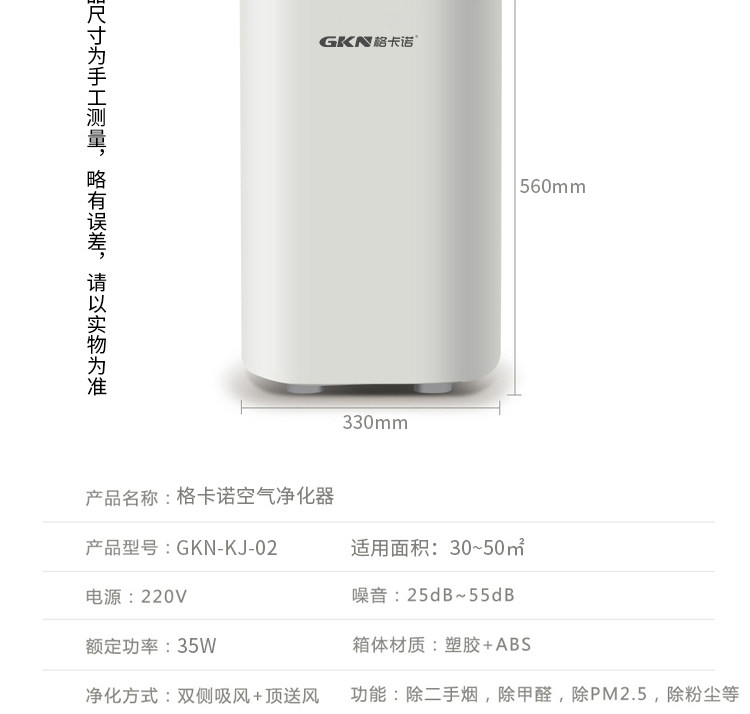 格卡诺空气净化器家用除甲醛室内异味净化器GKN-KJ-02 (椭圆款)彩盒款