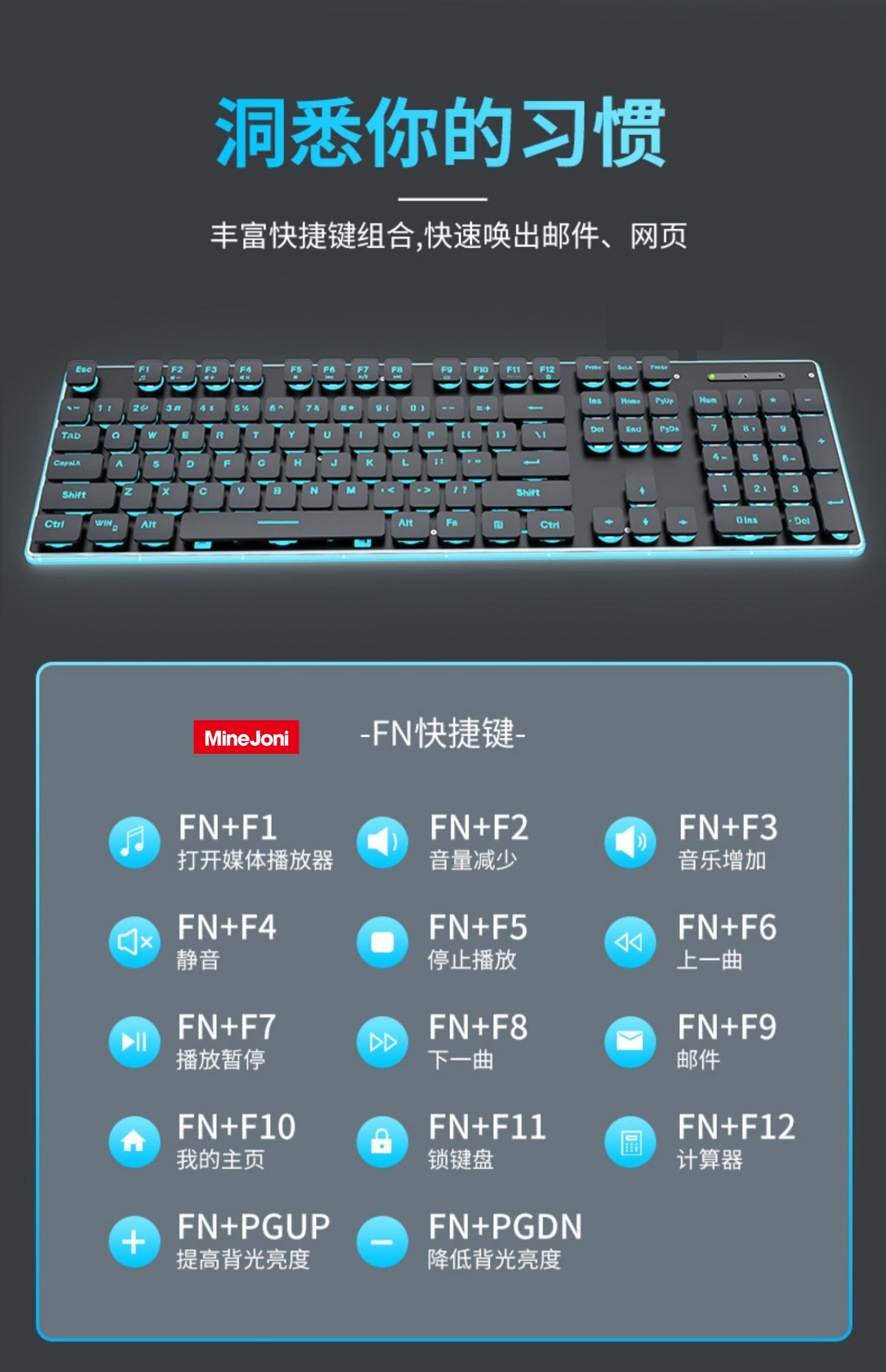 Mine Joni BK 12办公键盘机械手感键盘台式电脑笔记本游戏