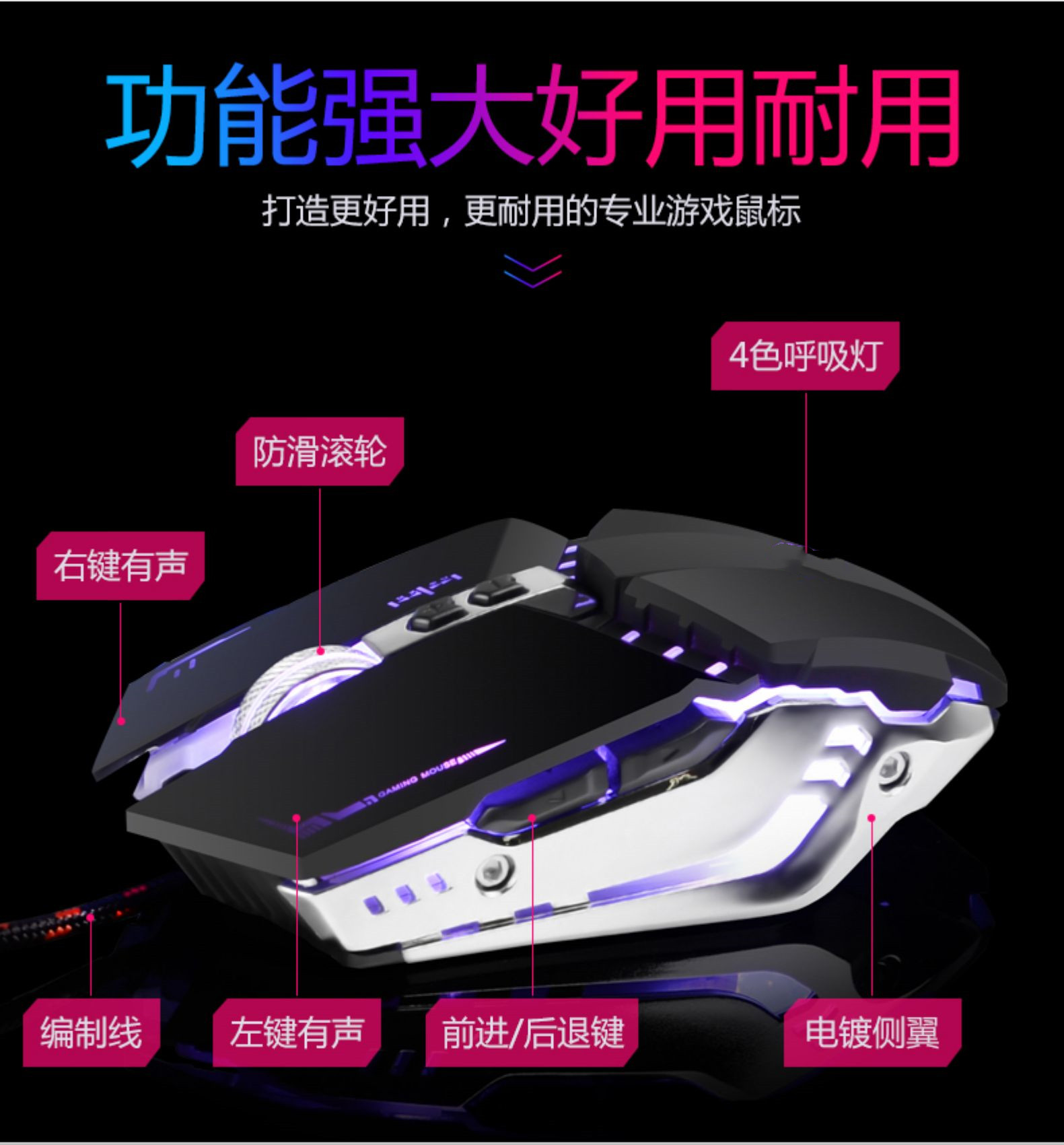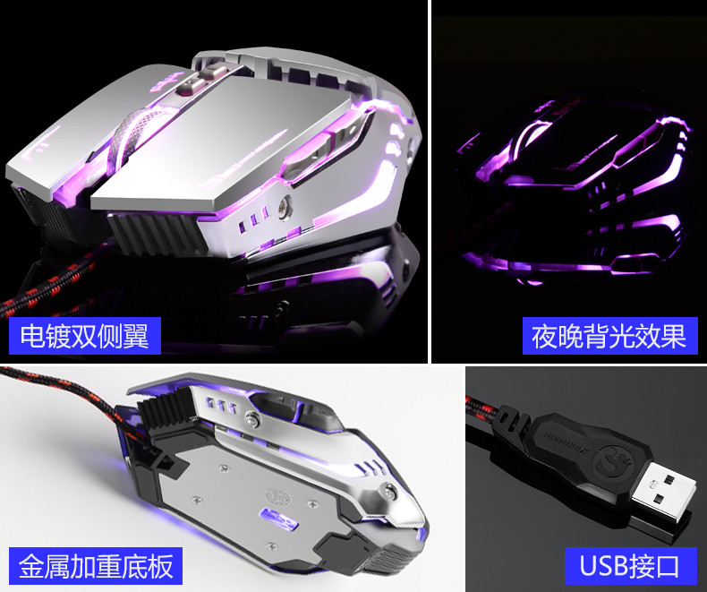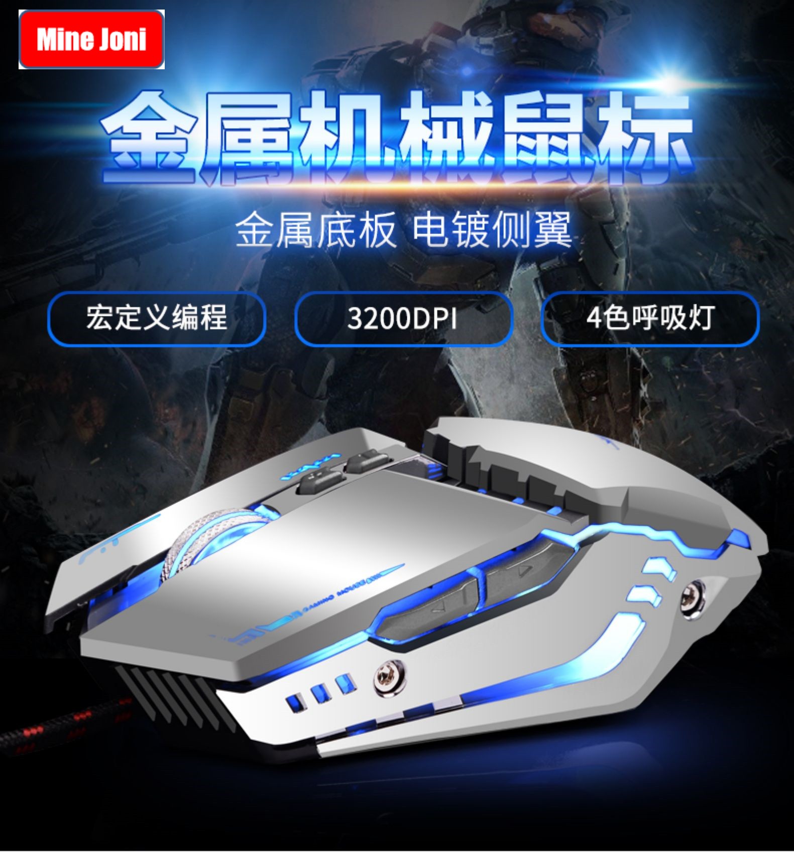 Mine Joni G20有线鼠标金属机械游戏专用电竞有线鼠标家用办公笔记本台式机lol网吧cf