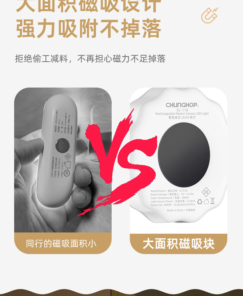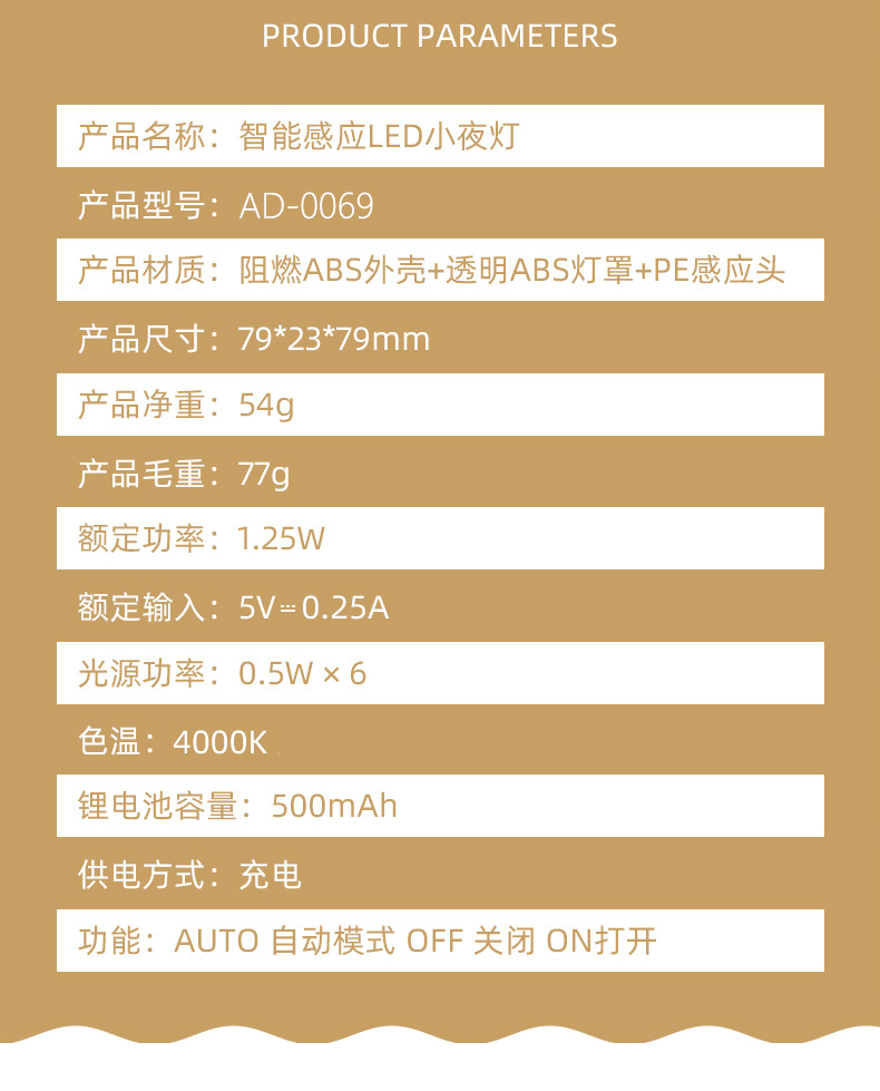 颐电智能人体感应光暗感应充电式小夜灯AD-0069