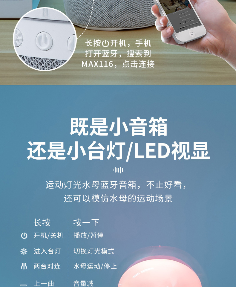 颐电彩舞水母乐动蓝牙音箱AD-0388