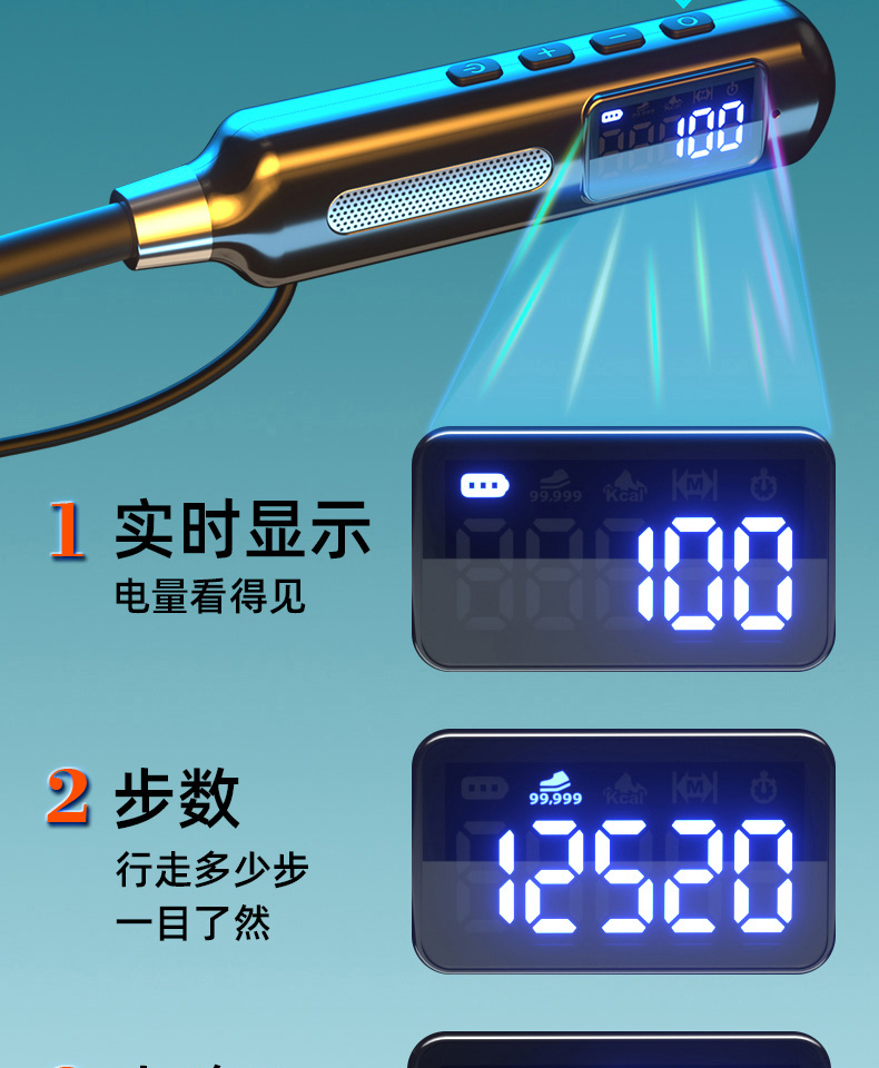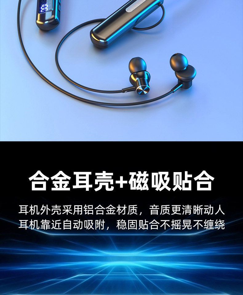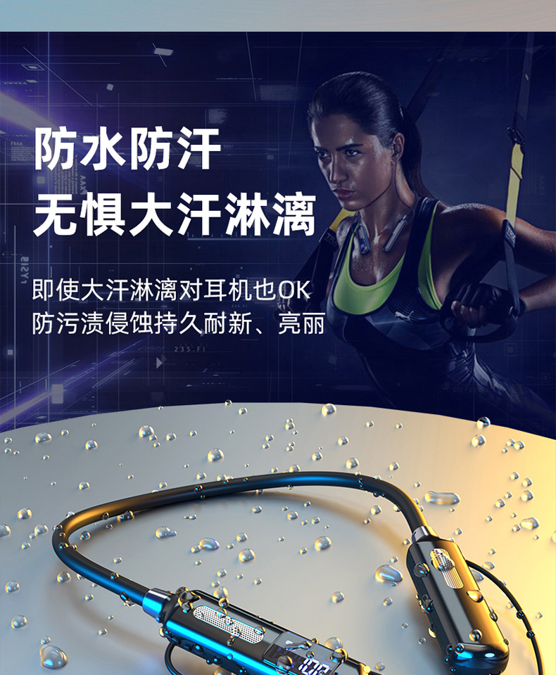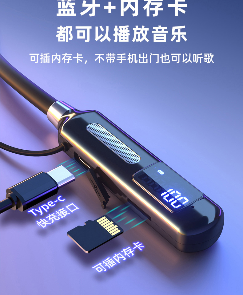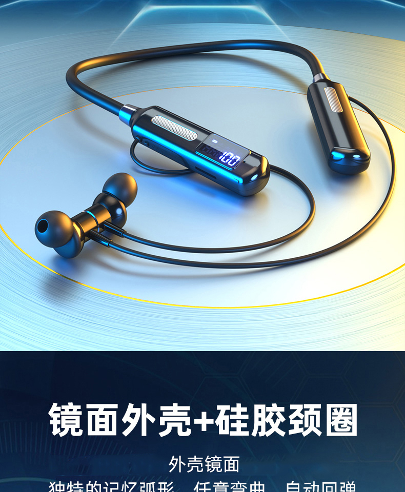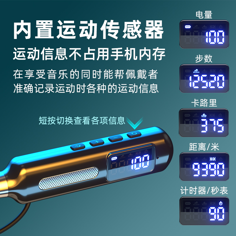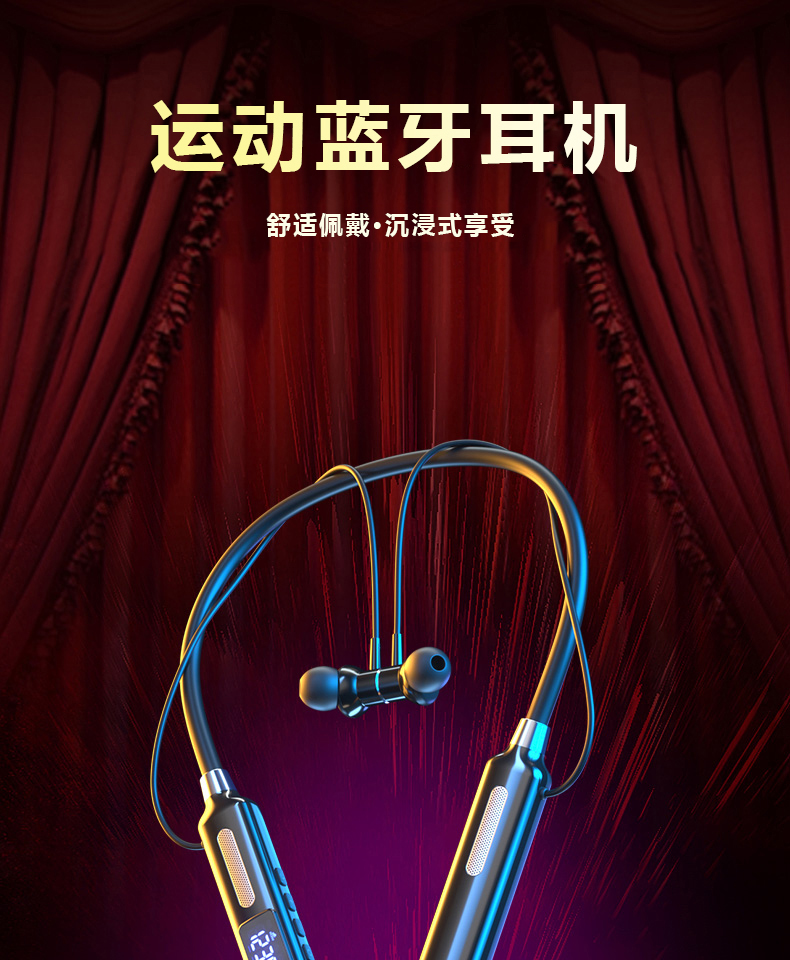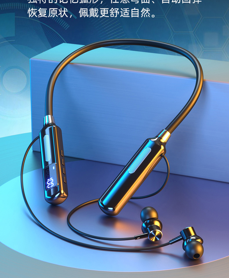 颐电挂颈式运动蓝牙耳机内置传感器数显运动数据AD-4034