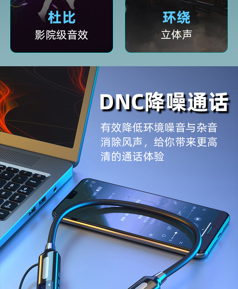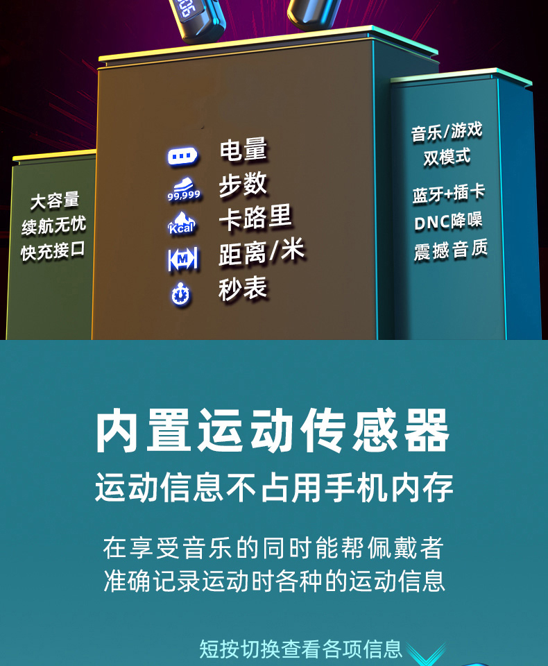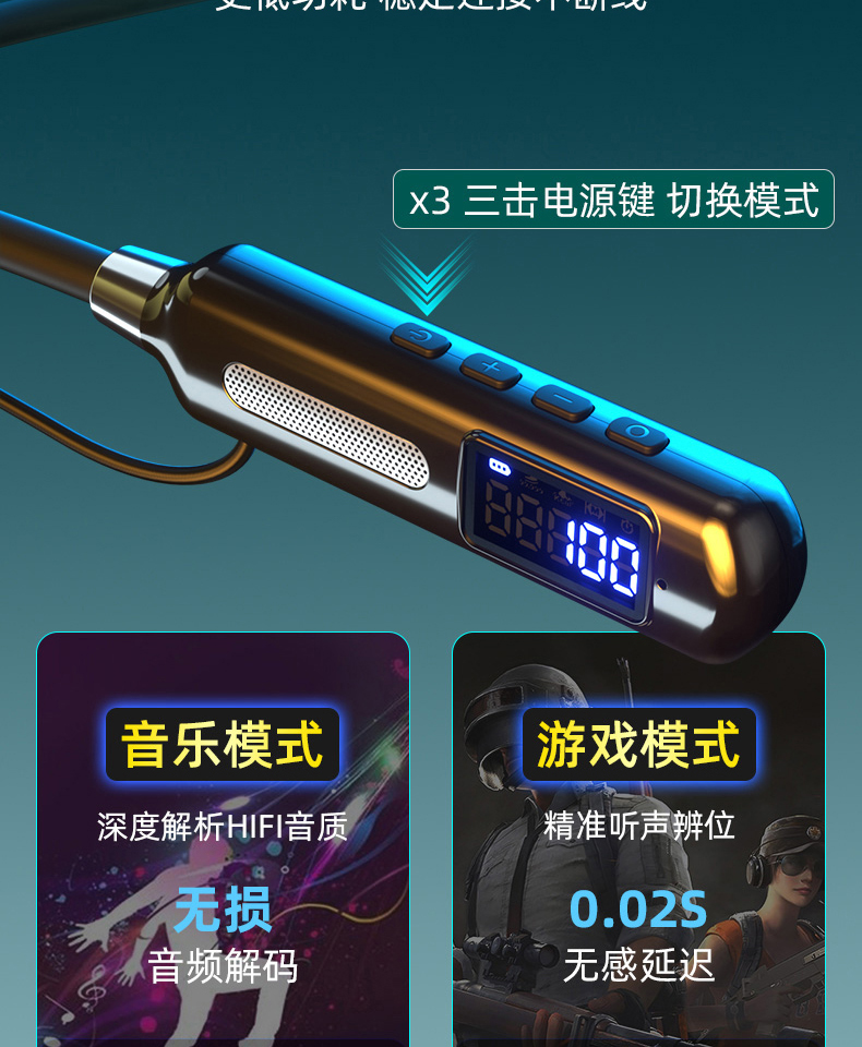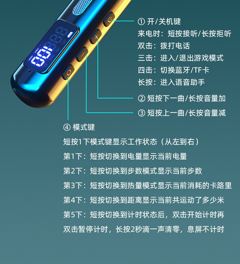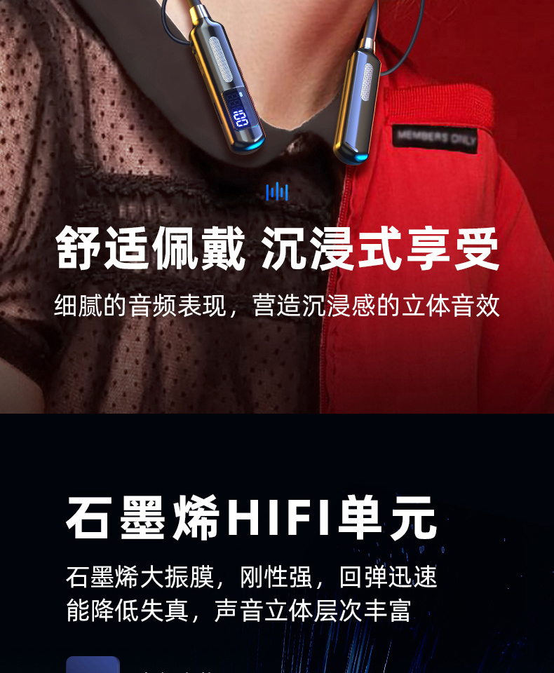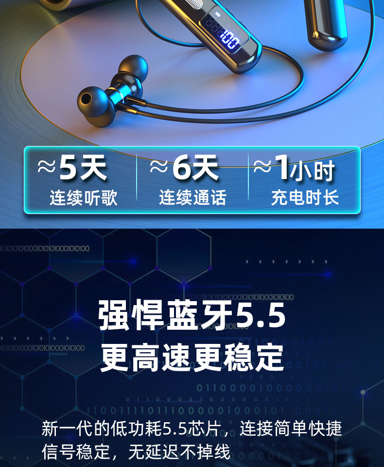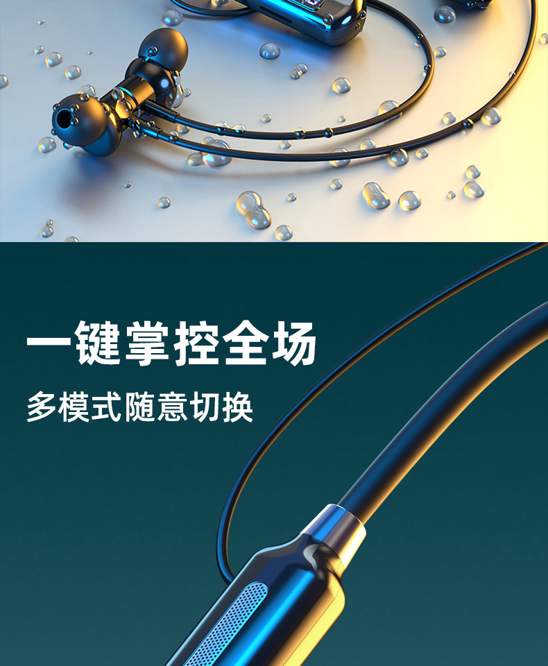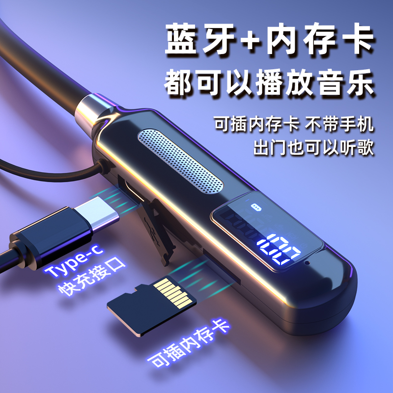 颐电挂颈式运动蓝牙耳机内置传感器数显运动数据AD-4034