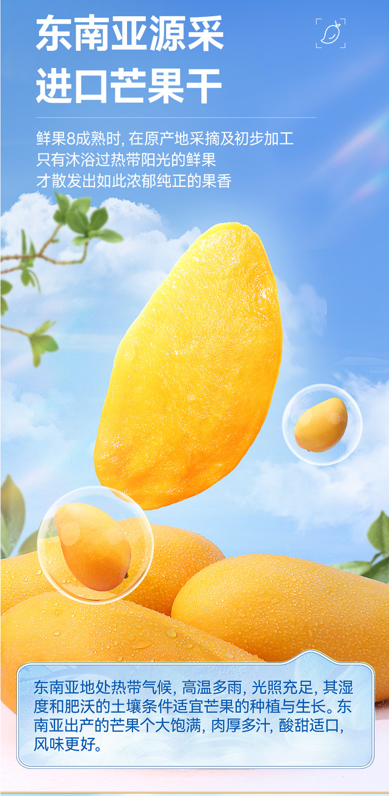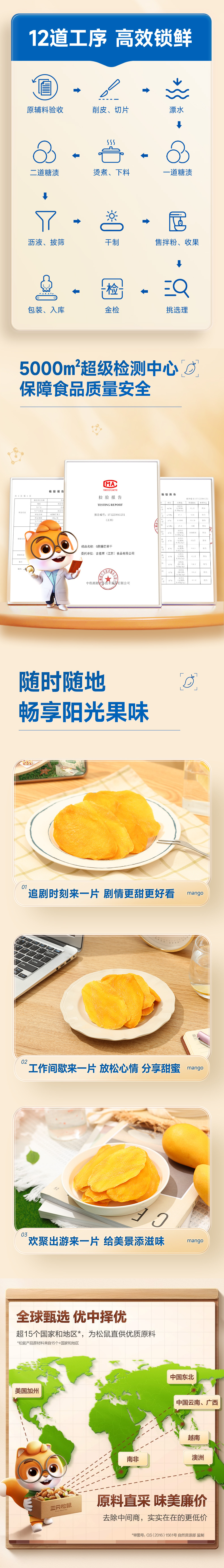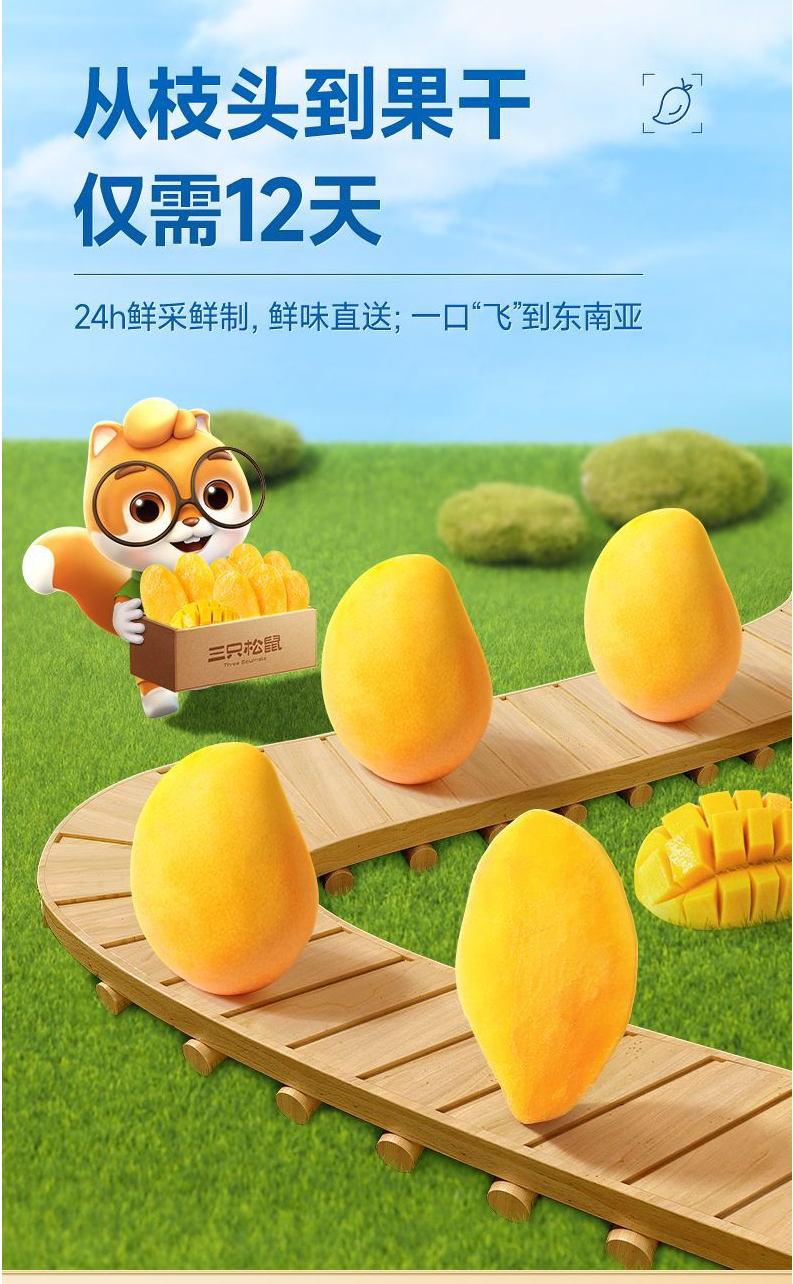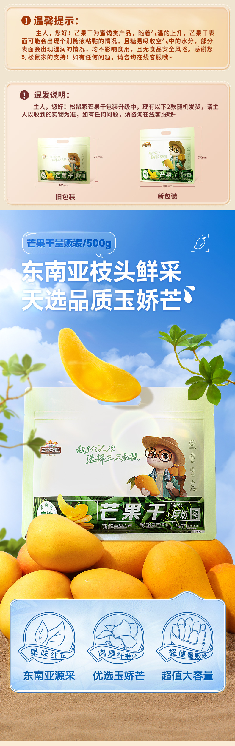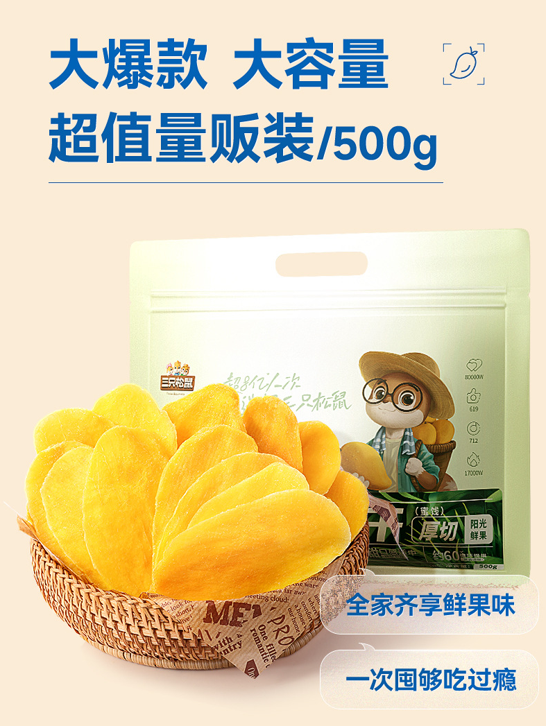 【三只松鼠量贩袋装芒果干500g】风味食品蜜饯水果果脯