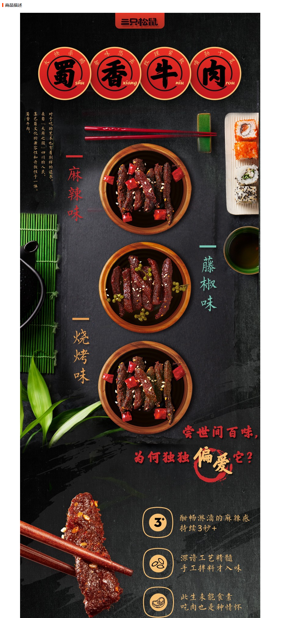 【三只松鼠蜀香牛肉60g】零食小吃麻辣解馋即食牛肉干熟食