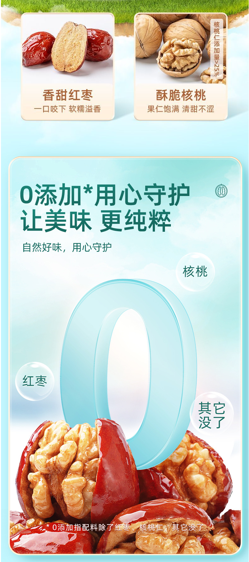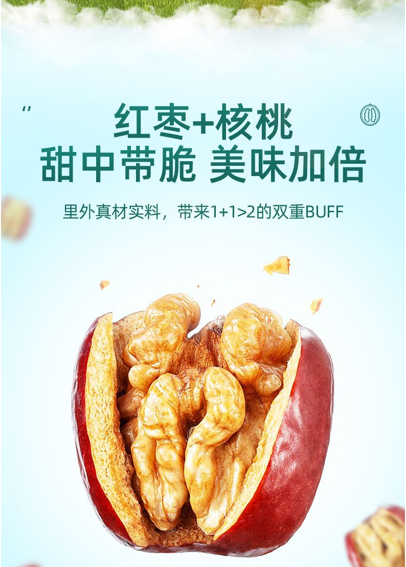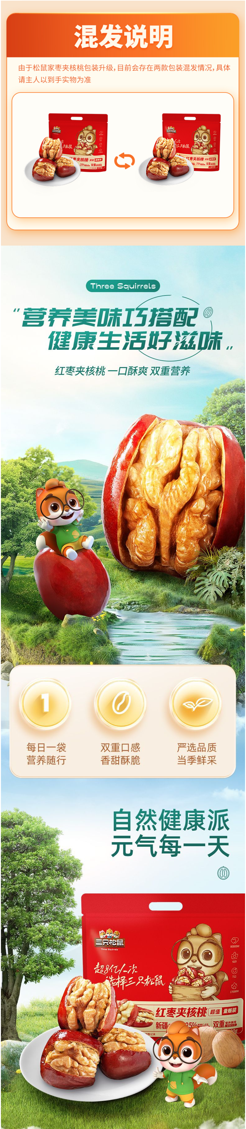 【三只松鼠量贩袋装红枣夹核桃400g】甜中带脆美味加倍