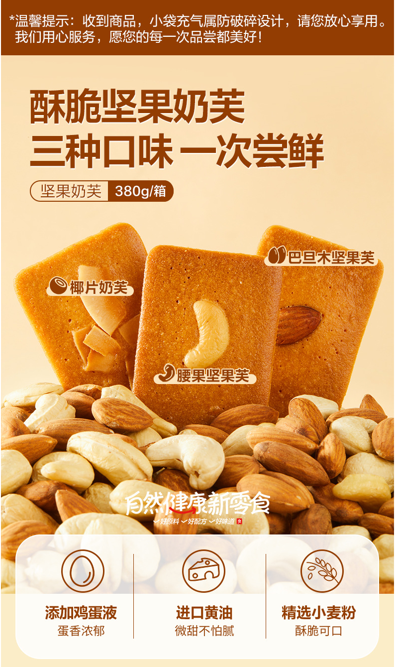良品铺子坚果奶芙380g坚果芙饼干薄脆饼干巴旦木腰果饼干休闲零食