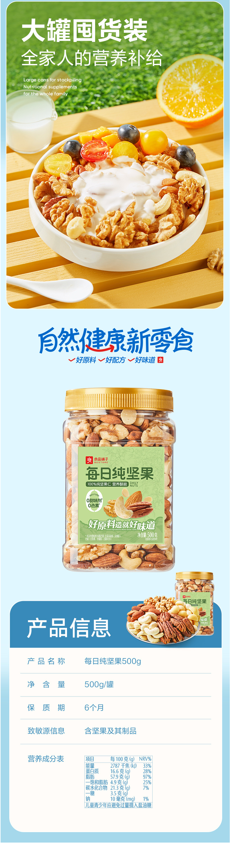 良品铺子每日纯坚果500g罐装 腰果核桃夏威夷果仁休闲健康零食