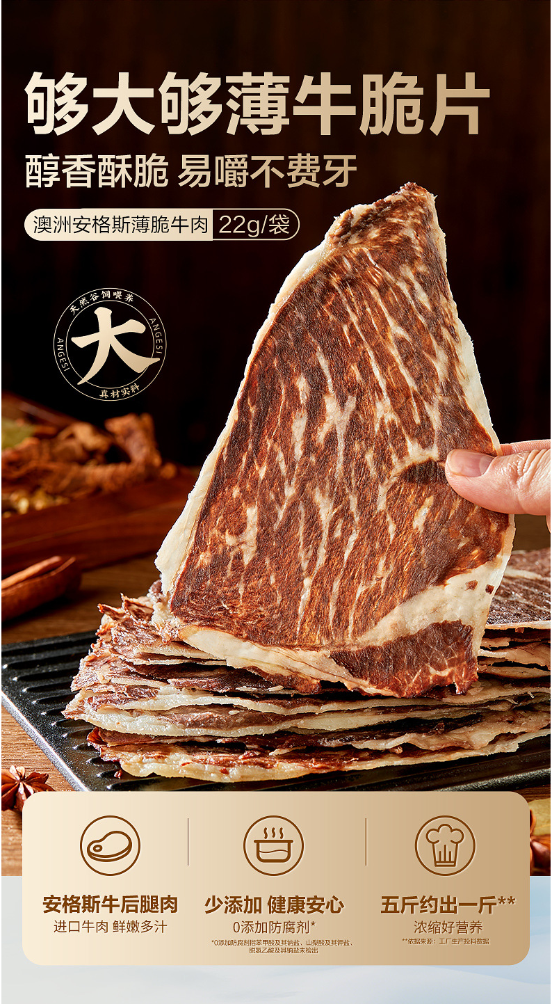 良品铺子澳洲安格斯牛排脆牛肉脆片牛脆脆肉类即食健康追剧解馋