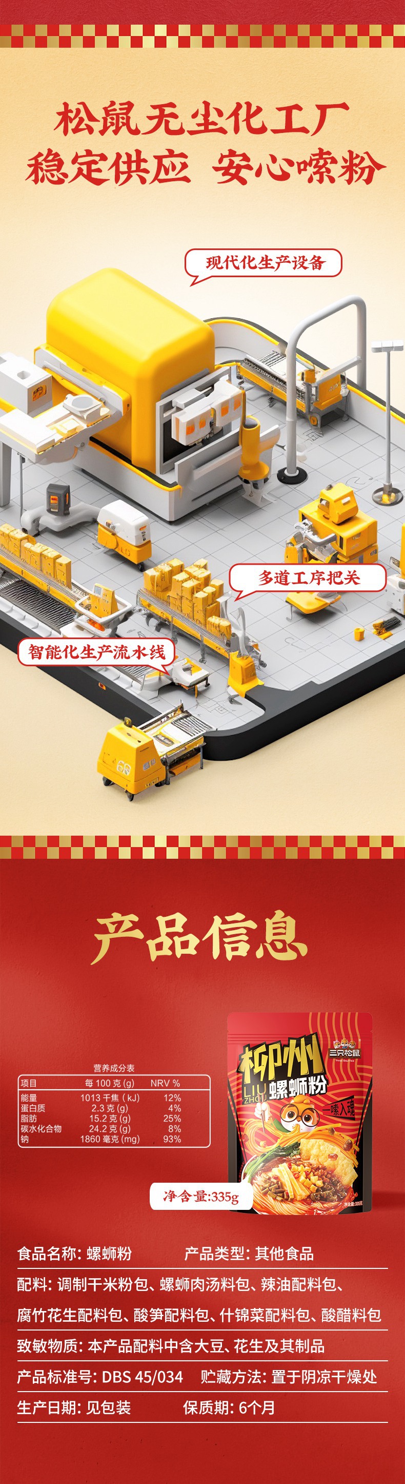 【三只松鼠_螺蛳粉335gx5袋】柳州特产螺狮粉