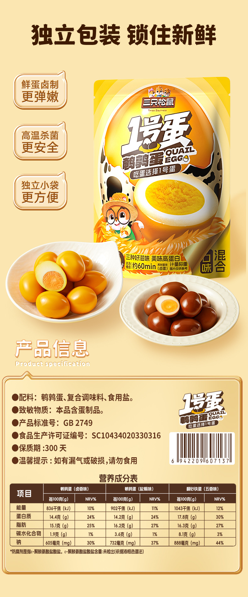 【三只松鼠多味鹌鹑蛋混合口味】休闲零食小吃卤蛋